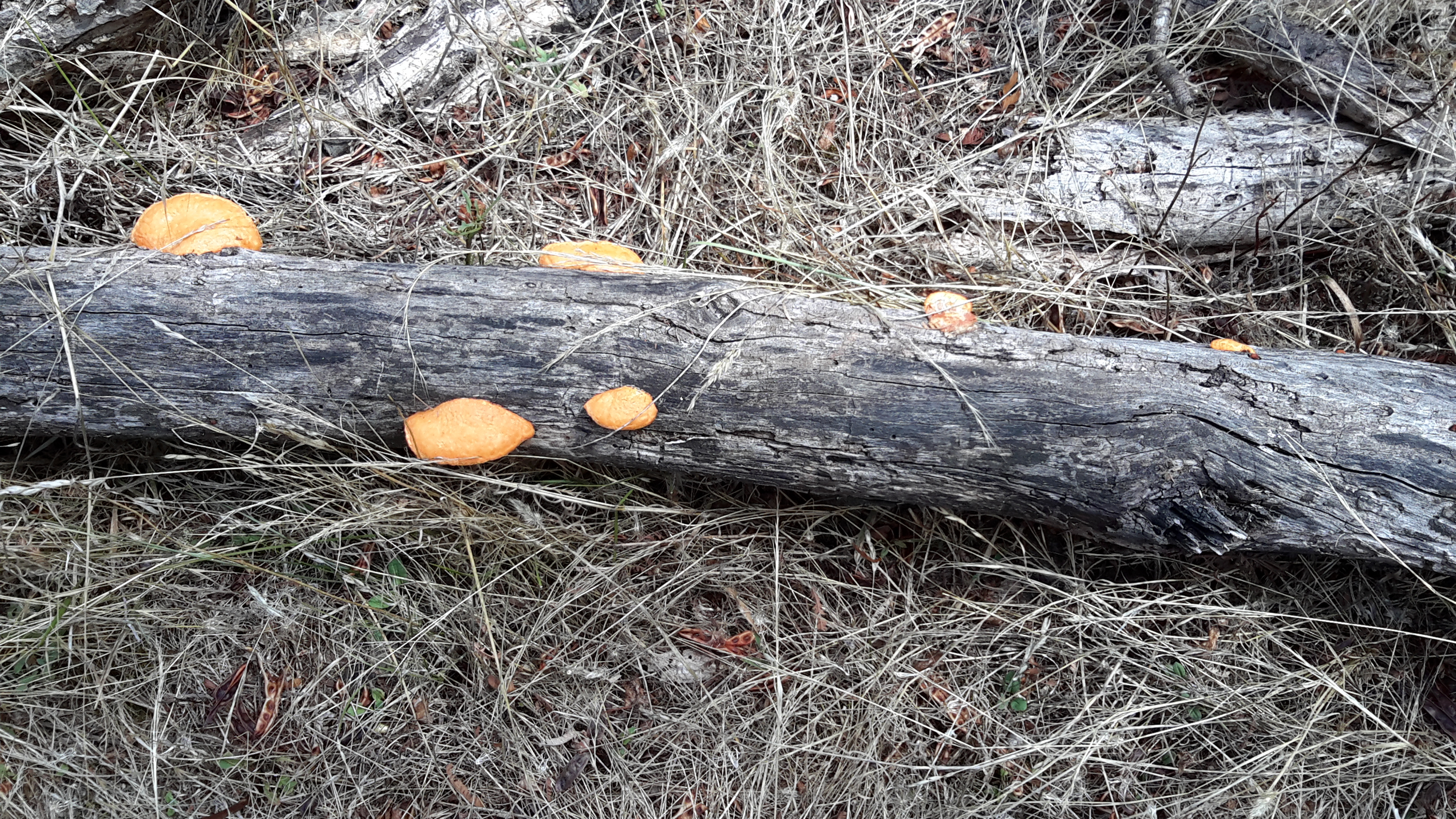 I always enjoy pretty sights of decay, although my photo doesn’t bring out the intense orange colour of the fungi that I remember.