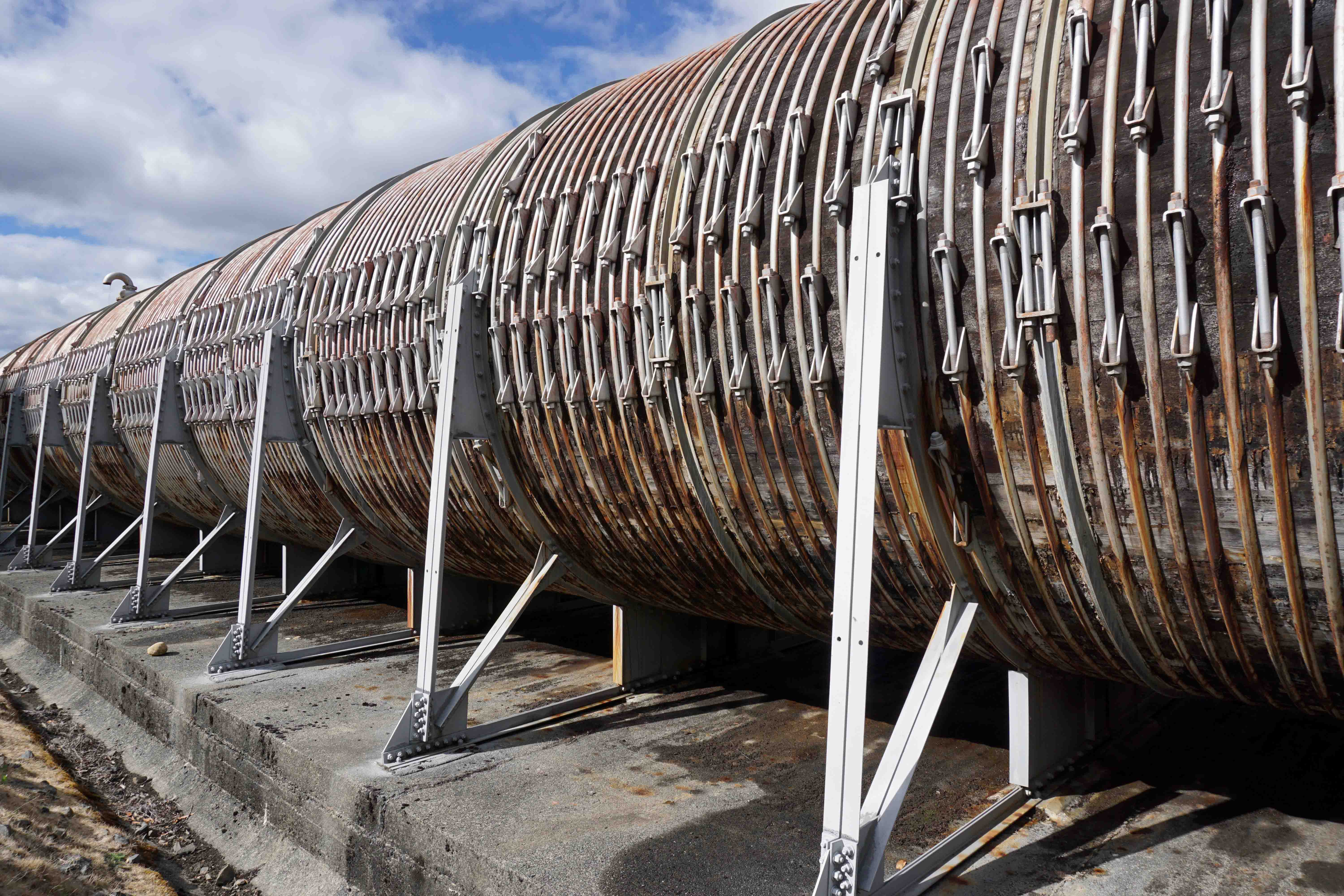 The structure of the old bridge, originally opened in 1946, loomed over the landscape.
