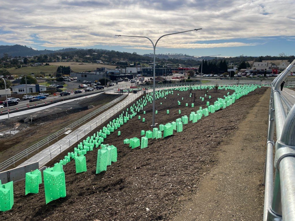 I learnt today that the River Derwent is also known as timtumili minanya in the palawa kani language. At one end of the many feeder roads to the new bridge the aboriginal name is inscribed deeply into the concrete walls.