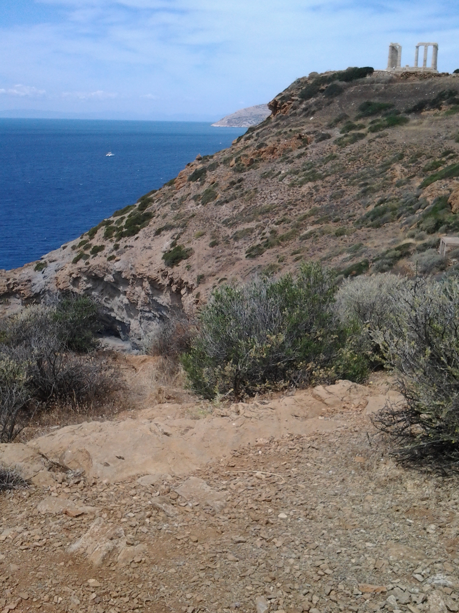 A few months ago I visited Greece, and while I am probably one of few travellers who did not ferry around the islands, from the mainland I did look out at the glorious expanses of the Aegean Sea and marvel at the islands in the distance. The joys of discovery were not limited to searching in the distance. Sometimes, as I found, you can enjoy the sea even more because of structures on the land – you can see through them and they create frames for seeing other landscapes. South-east of Athens is a ruined temple, the Temple of  Poseidon. Almost picture postcard imagery. I had to keep pinching myself.  I was there.  I smelled the freshness of the wind.  I tasted the salt on the air. I felt the sparkle of the sun in my eyes. I heard the passing of seabirds. And I touched the remnants of the workmanship of creativity from over 2000 years ago. And there below and spread out into the distance was the deep blue of the water capped by the blue of the sky.  The gods certainly found one part of paradise.