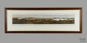 This panorama of Port Jackson and of the town of Sydney was taken from a hill near the Parramatta River, was produced with ink on paper by Major James Taylor, Sydney, New South Wales, Australia, 1820, then engraved by Rittner et Goulpil, Sydney / Paris in 1824. The Powerhouse Museum (Sydney) provided the following information: