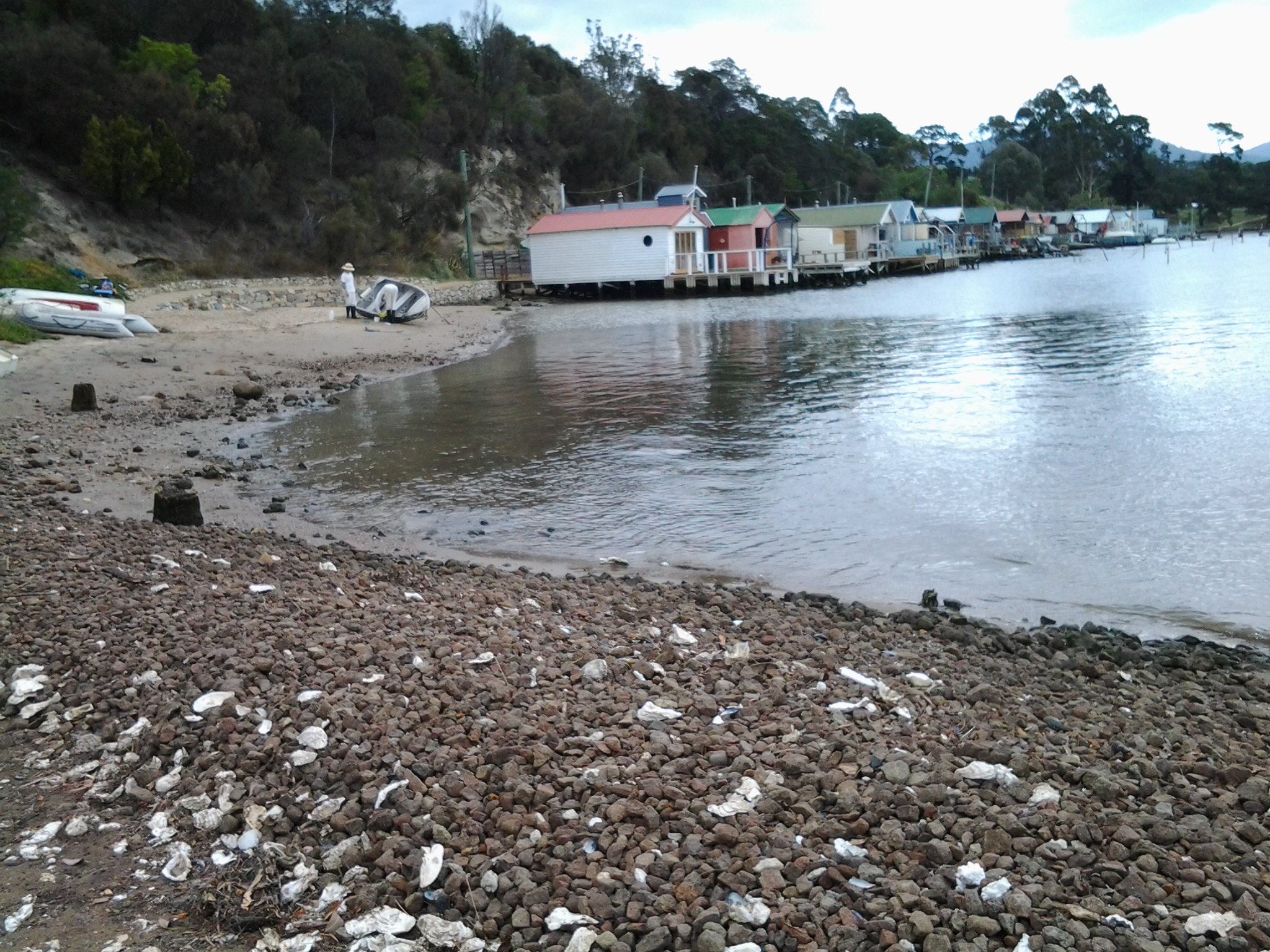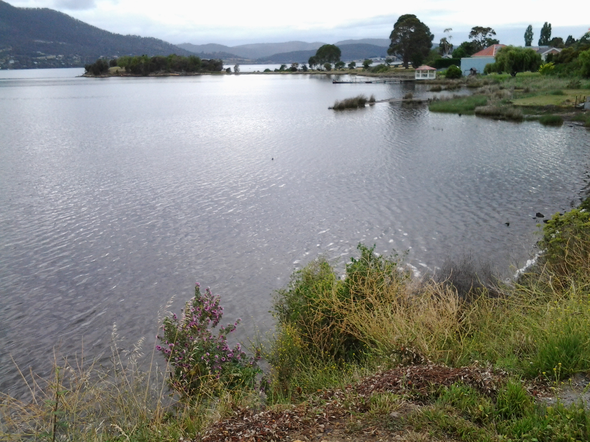 Since walking along the Derwent River in the northern suburbs on the western shore earlier this year, I have revisited MONA at Berriedale on a number of occasions but I have not been further north. So it was a great delight when my X1 Metro bus, which departed from Hobart city at 7.17am, used the old main road after the Glenorchy bus mall to travel through Berriedale, Claremont and Austins Ferry before reaching Granton. I was able to see the acres of majestic gold and red leafed vines of Moorilla Wines, to observe Cadbury’s chocolate factory puffing plumes of white steam into the crisp blue sky morning, to identify a range of native birds that were using Goulds Lagoon as a safe resting place, and to recognise various bays and other features that I had passed previously. Everything seemed edged with the early sunlight which glowed strongly through rain washed, impeccably clean air.