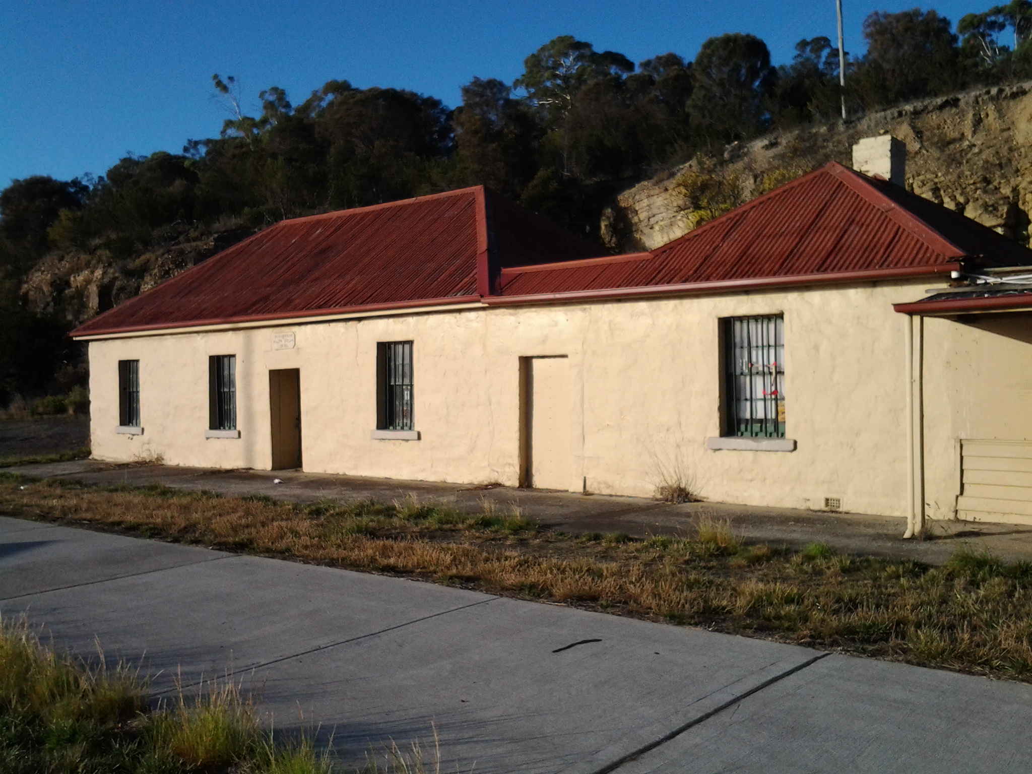 I was off the bus at stop 49 on the last of the Brooker Highway at 7.50am. Looking northwards, the sign made it clear the direction to take was straight ahead. An earlier post introduced the history of the old Granton watch house (search Historic Granton, Tasmania) – that’s the low yellow building on the left in the first photo below, and then the second photo shows the sun-struck front of the building.