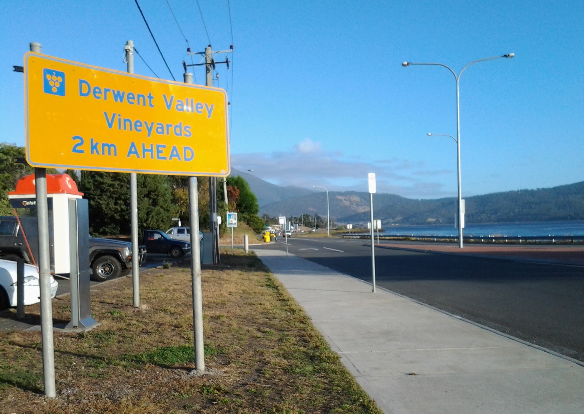 In front of the carpark a sign reminded me of the importance of grape growing in Tasmania – not the least because the wine from our vineyards is very drinkable (as agreed by wine judges from around the world).