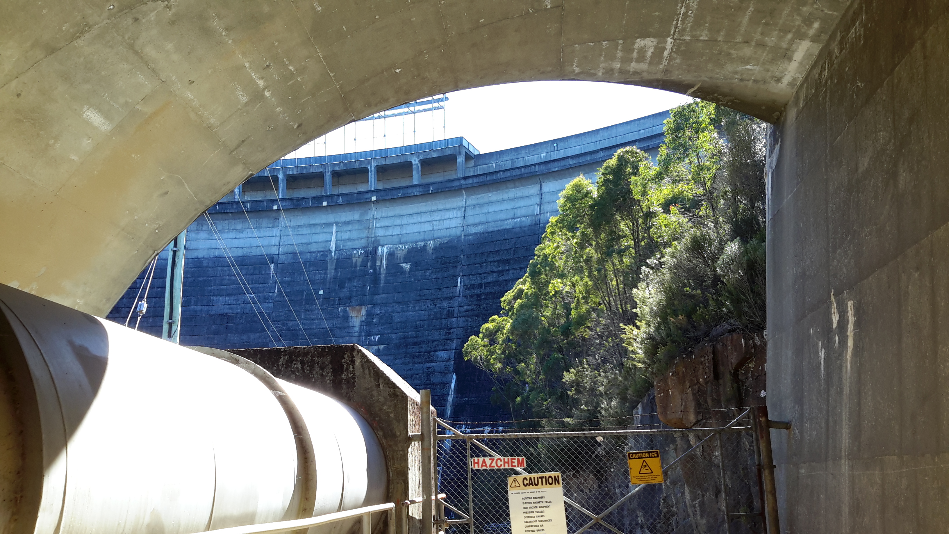 Well over a year ago, one morning I walked through smoky air westwards into the Catagunya Power Station. After a night camping, entwined by the thick atmosphere of a far distant bush fire and desperate for water, I was relieved to be received hospitably at the Station. At that time I was thrilled by a guided tour of the building and its operation, however I never proceeded to walk the extra few hundred metres to look at the Dam wall holding back the large Lake Catagunya. I was most grateful when many months ago, my walking proxy Andrew climbed the hills from Wayatinah Power Station to arrive at and photograph the Catagunya Dam. A blog search using “Catagunya” as the term, will help you to locate those past stories plus a swag of descriptive photographs.