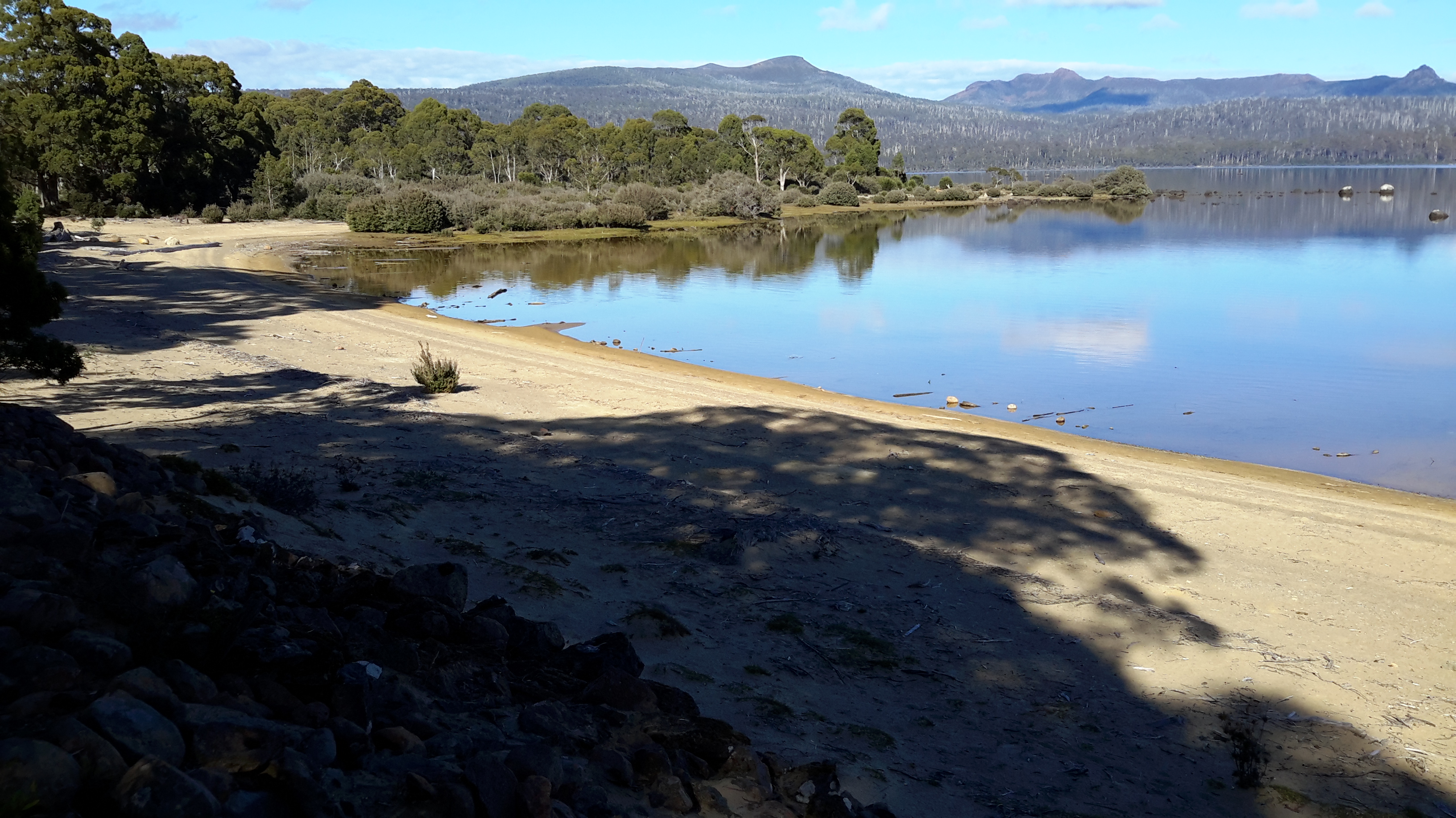 The farthest inland stages of my walk are easily defined. I walked from near the township of Tarraleah besides Canal 1 (along which is transported Derwent River water) above the actual River bed, past Clark Dam, and around majestic Lake King William to the township of Derwent Bridge. From there I followed the river to its source at St Clair Lagoon dam. In case some people believe the source of the Derwent is further inland, I walked onwards to the weir where the Derwent Basin empties into the St Clair Lagoon via passing the southern end of Lake St Clair.