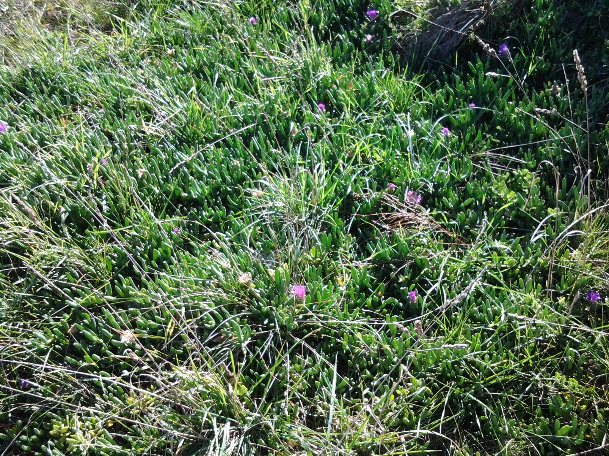 At the end of the beach I clambered up the rocky earthy banks amidst a rich layer of fleshy vegetation that looked good enough to eat. I knew that the pigface plant with bright pink flowers open to the sun was edible, but what about the rest.