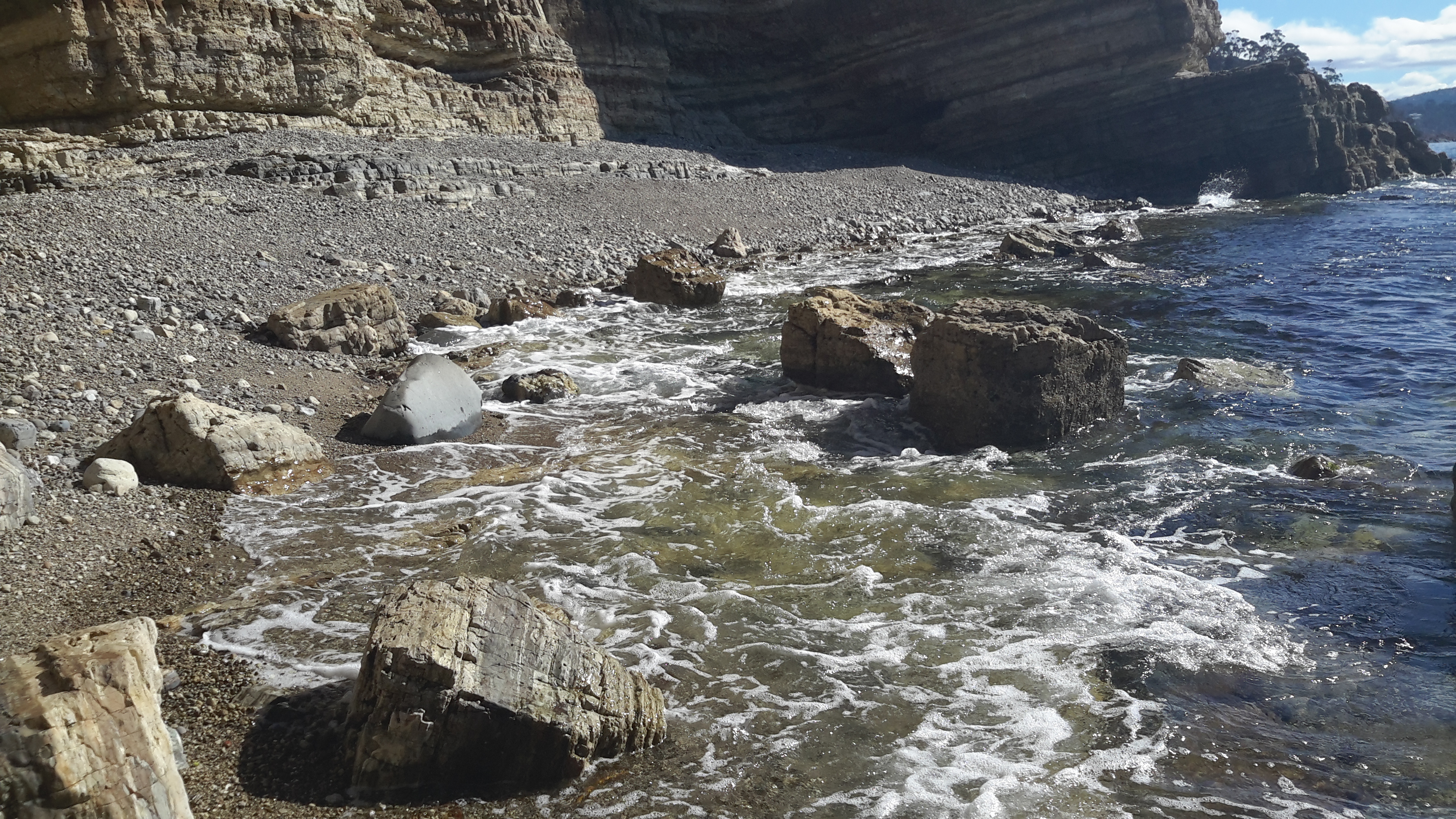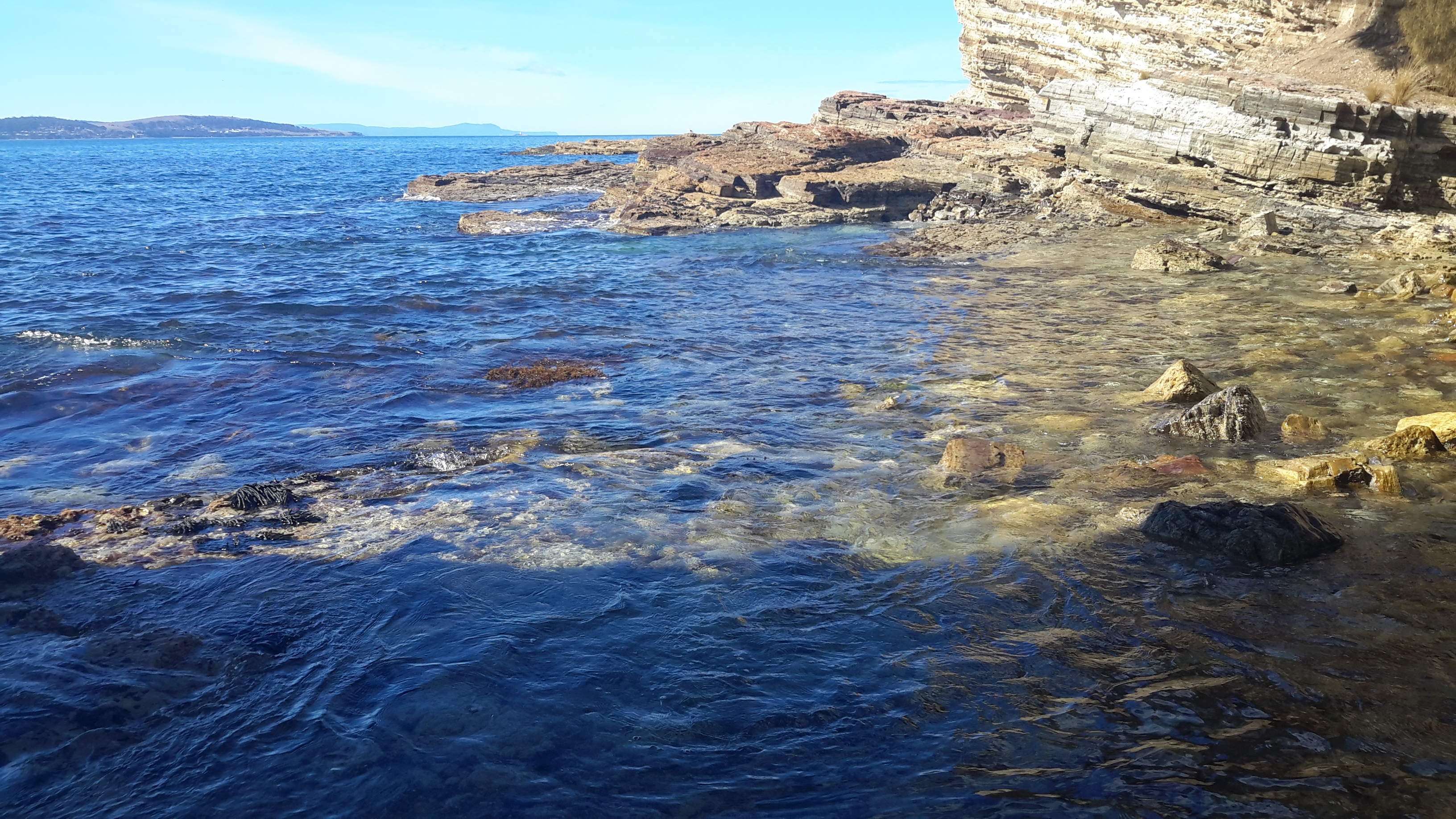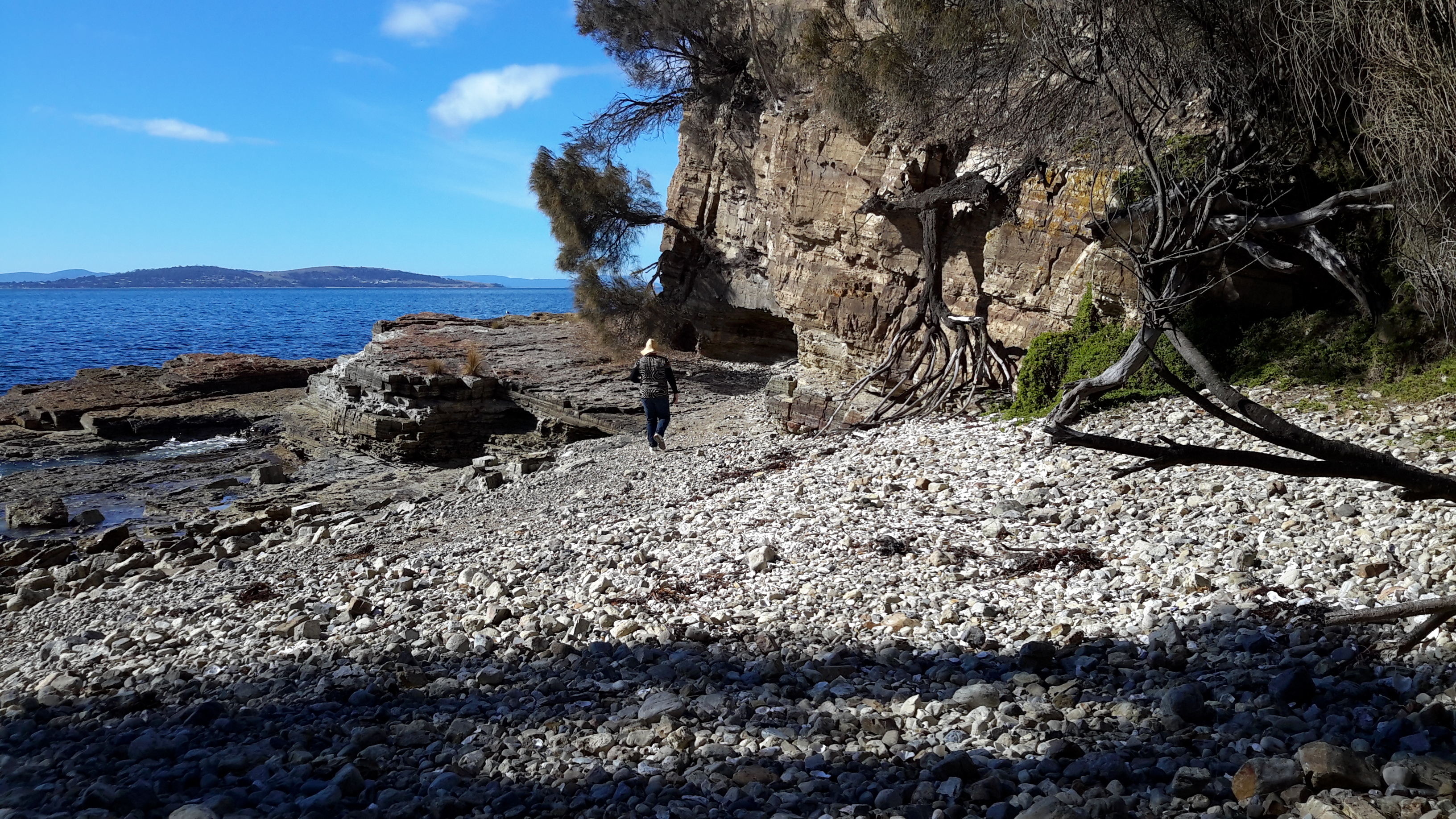 The day was perfect for walking so I began to wonder whether I should aim for the mouth of the Derwent River at Pearsons Point, rather than Fossil Cove many kilometres before the final headland. As I continued up Treatment Plant Road, and past the Blackmans Bay Scouting Camp buildings (for Joeys, Cubs, Scouts and Venturers) the temptation to head to the mouth strengthened. I reasoned that the day was young, the weather wasn’t too hot or cold and it wasn’t raining, and my feet hadn’t failed me.