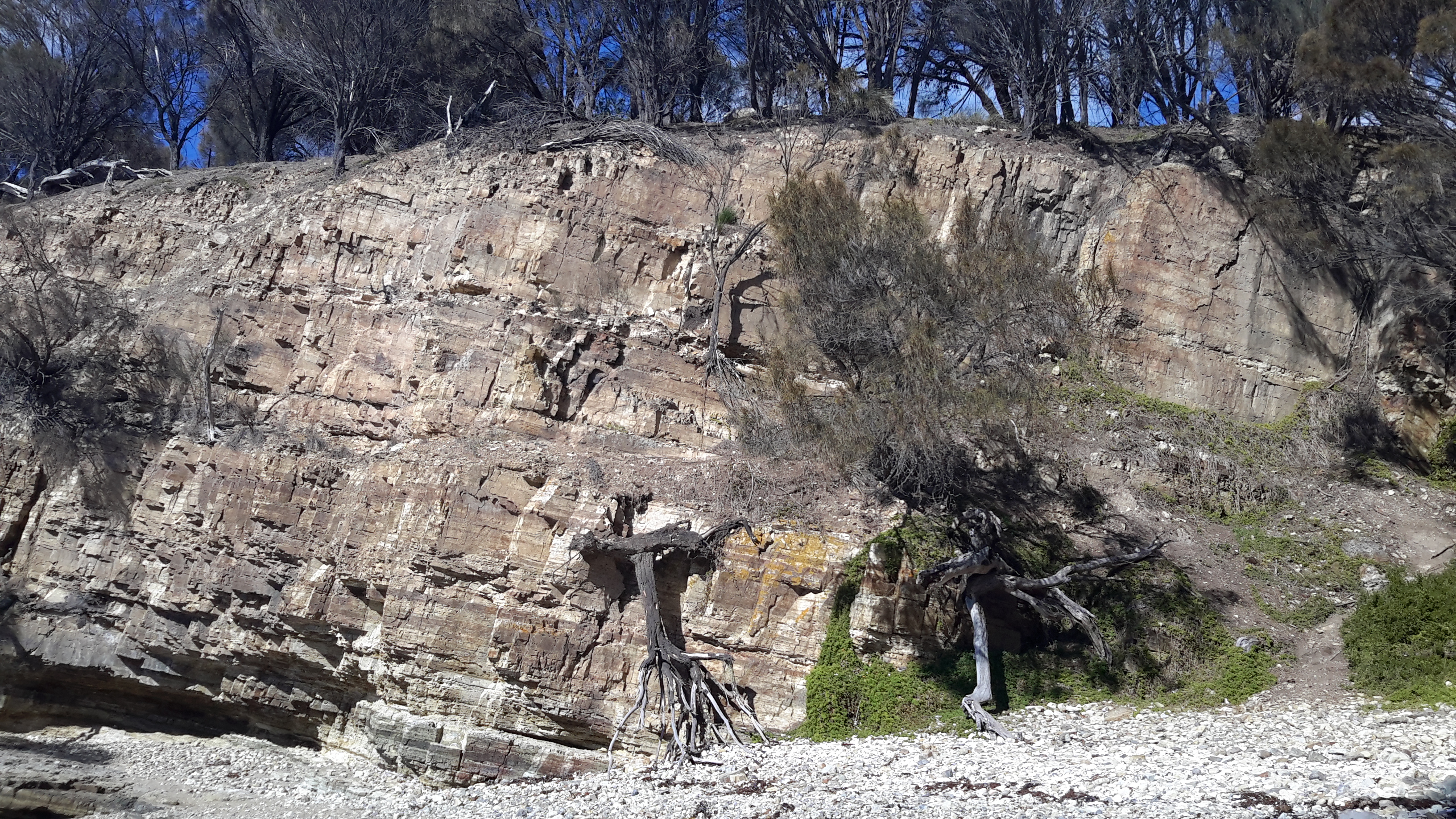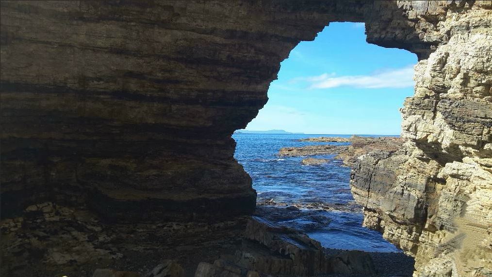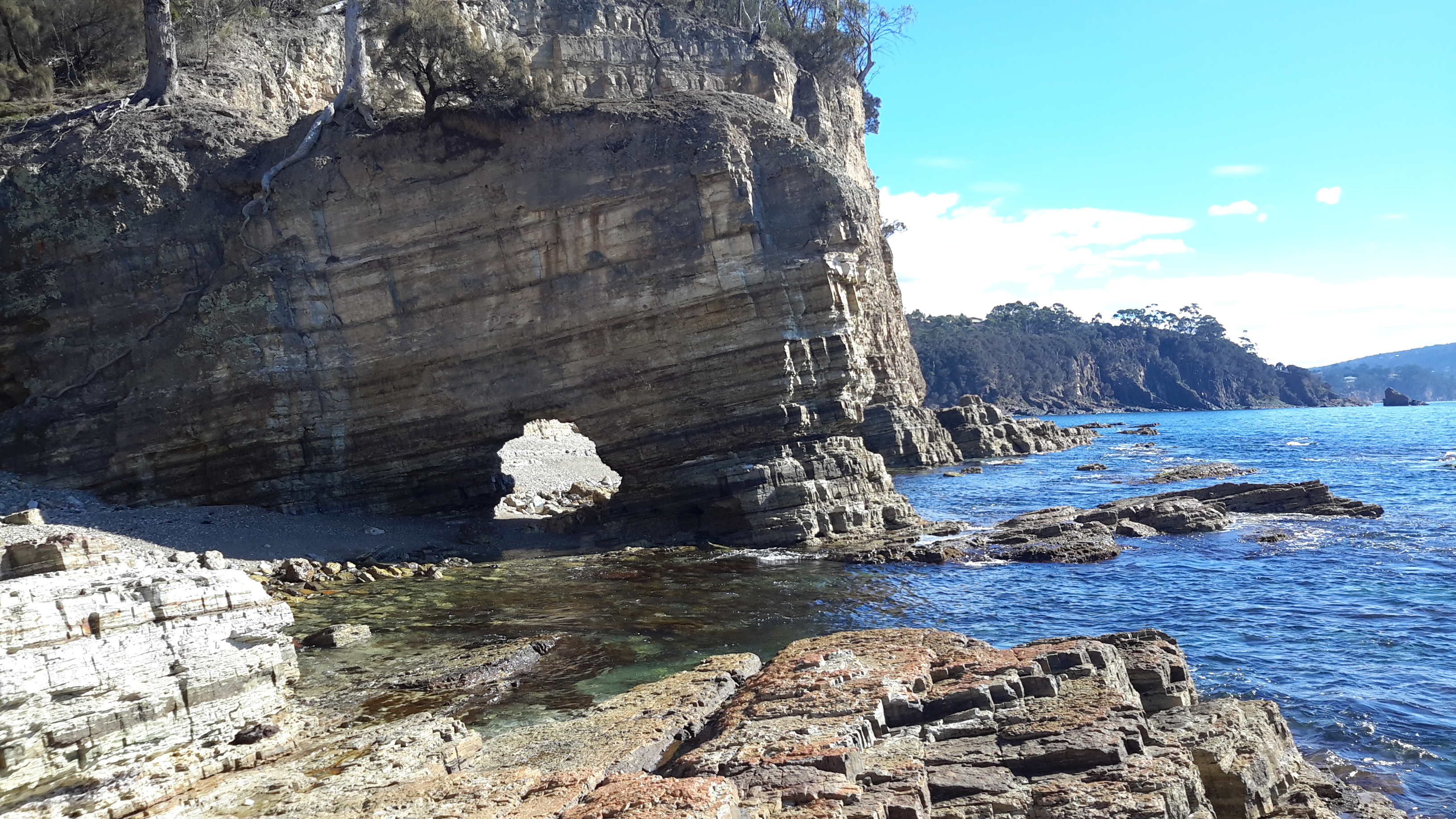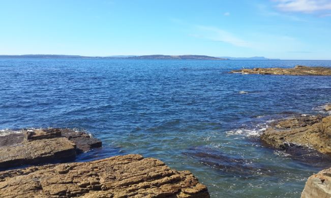 The day was perfect for walking so I began to wonder whether I should aim for the mouth of the Derwent River at Pearsons Point, rather than Fossil Cove many kilometres before the final headland. As I continued up Treatment Plant Road, and past the Blackmans Bay Scouting Camp buildings (for Joeys, Cubs, Scouts and Venturers) the temptation to head to the mouth strengthened. I reasoned that the day was young, the weather wasn’t too hot or cold and it wasn’t raining, and my feet hadn’t failed me.