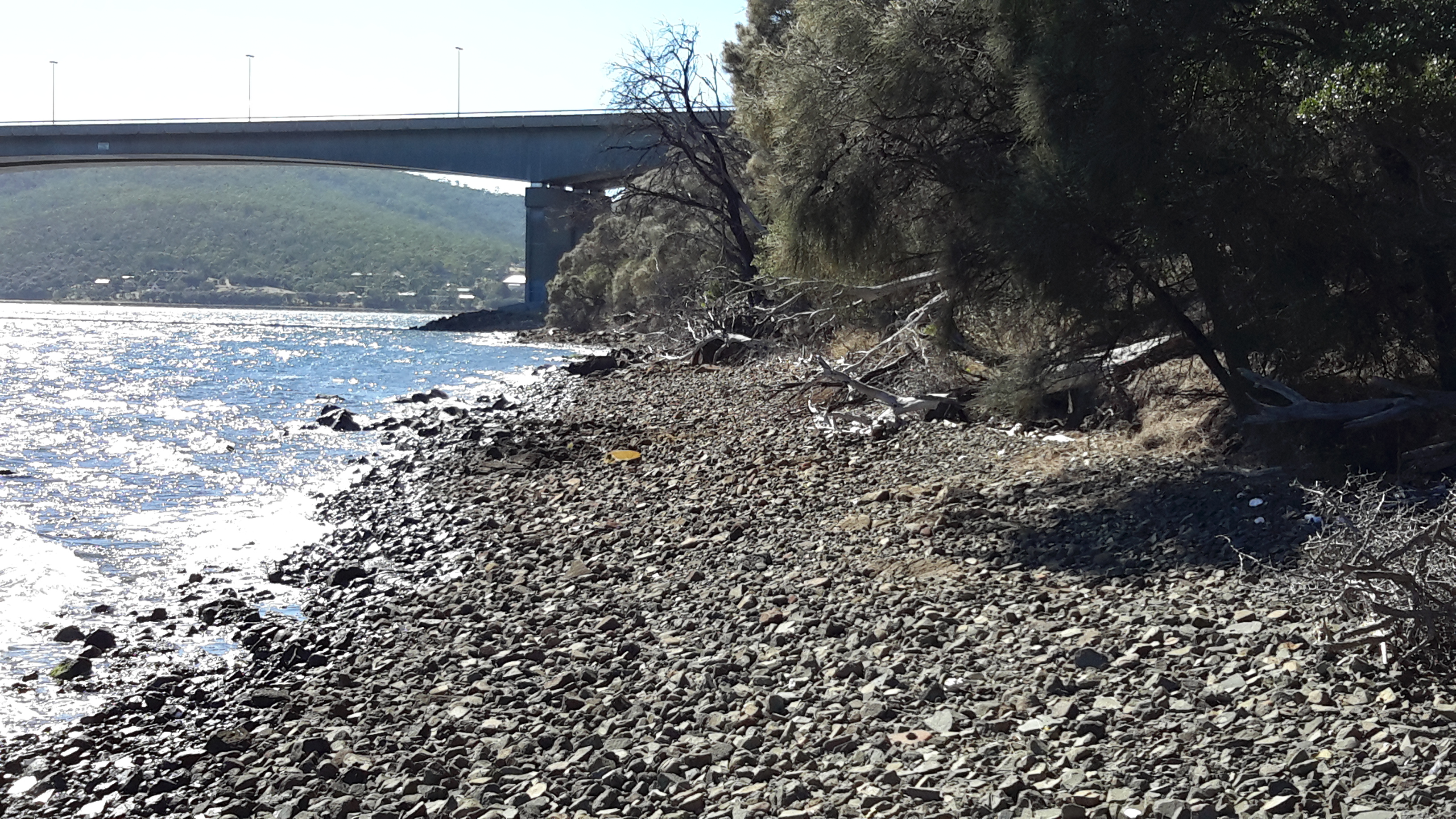 I decided to walk from the Bowen Bridge around Dowsing Point towards the Derwent Entertainment Centre on the Glenorchy side of the bridge. A faint track showing occasional foot traffic looked promising and became my guide.