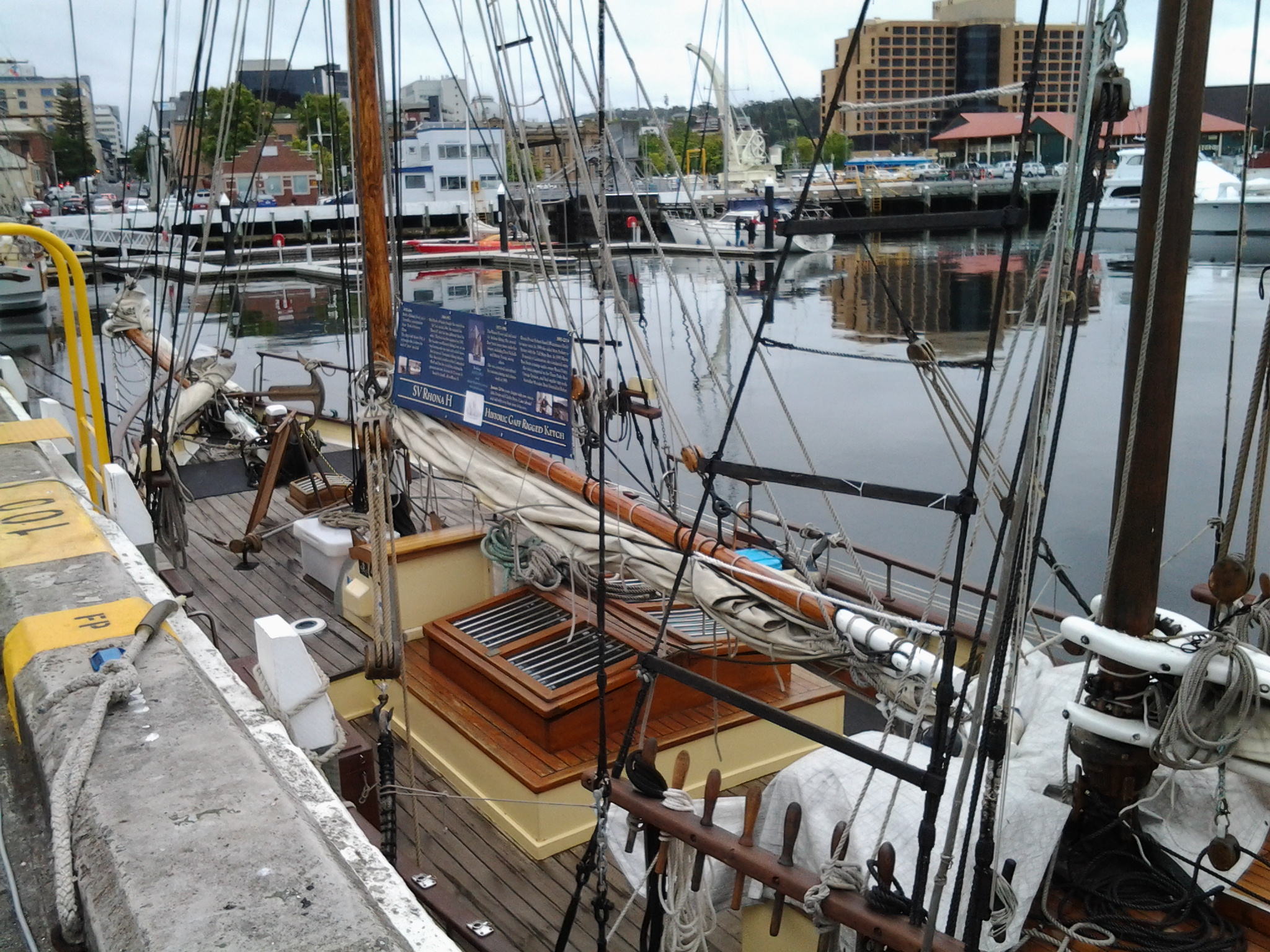 My photos below give some idea of the majesty of a sailing ship however small (and it also shows how glorious it is to be out on the Derwent River in Hobart).