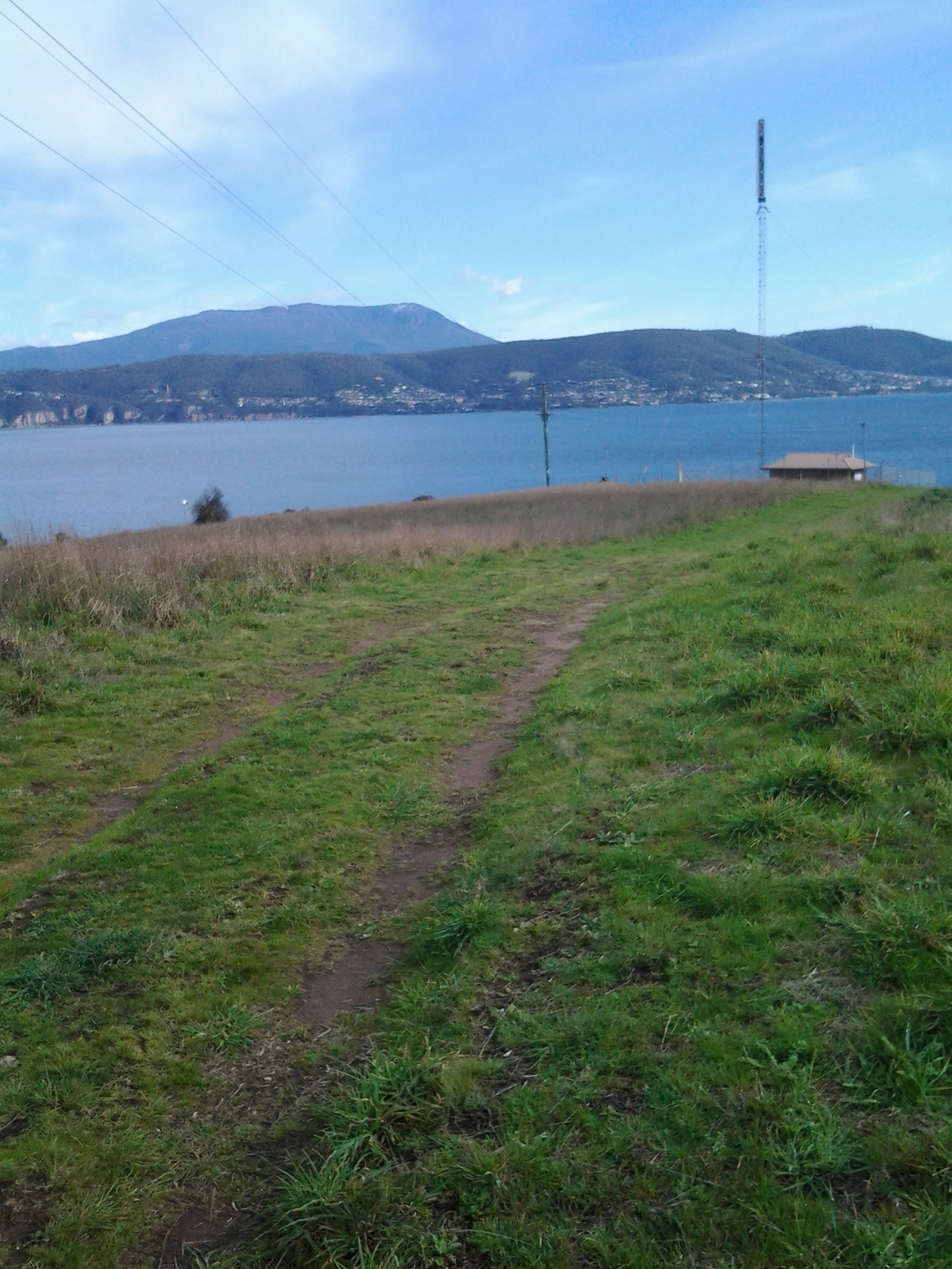 From Mitchell’s Beach I looked directly across the Derwent River and could see the suburbs of Kingston and Taroona with the Alum Cliffs below Bonnet Hill between them. Strikingly, Taroona’s Shot Tower stood tall. Stunning.