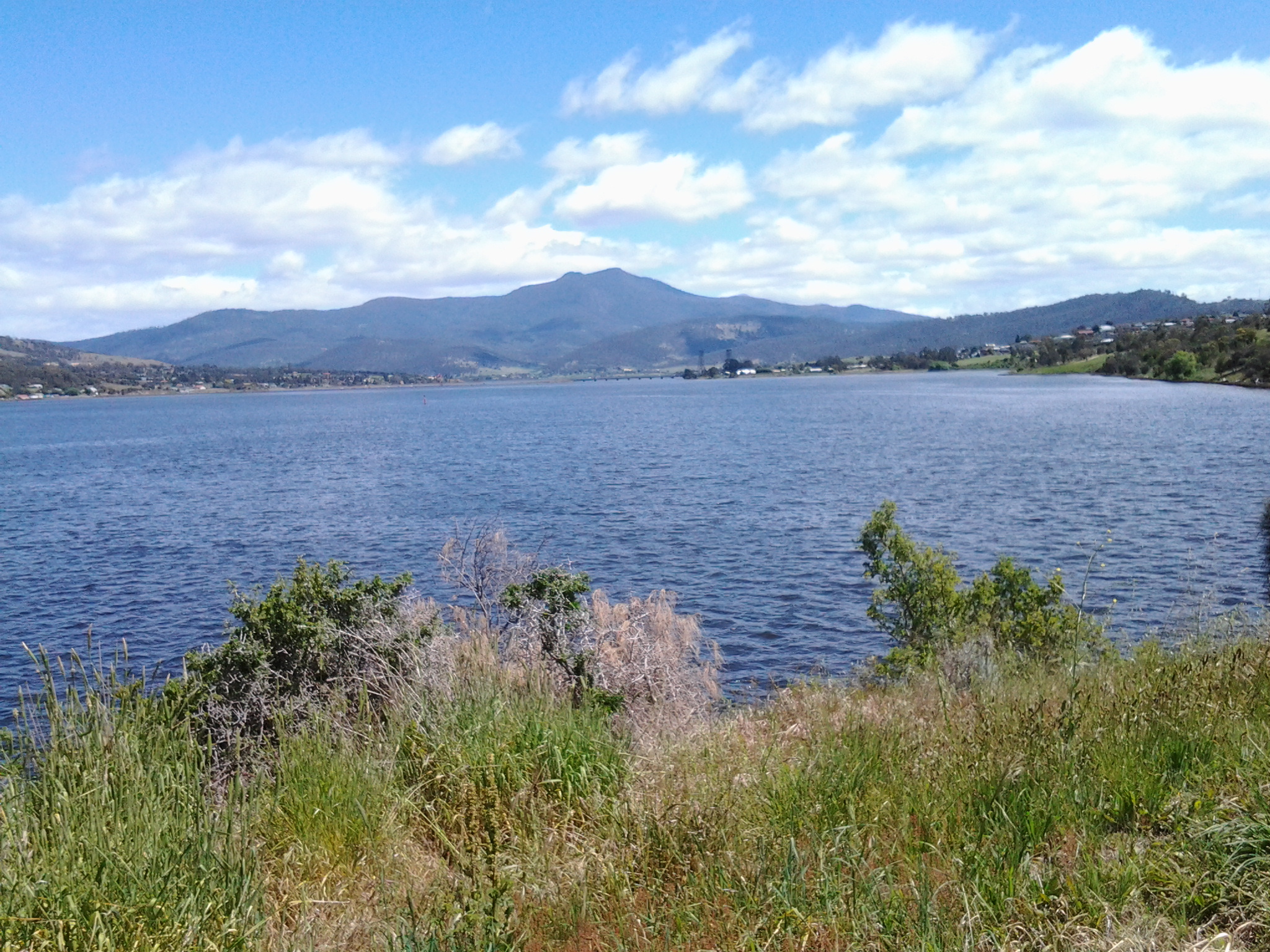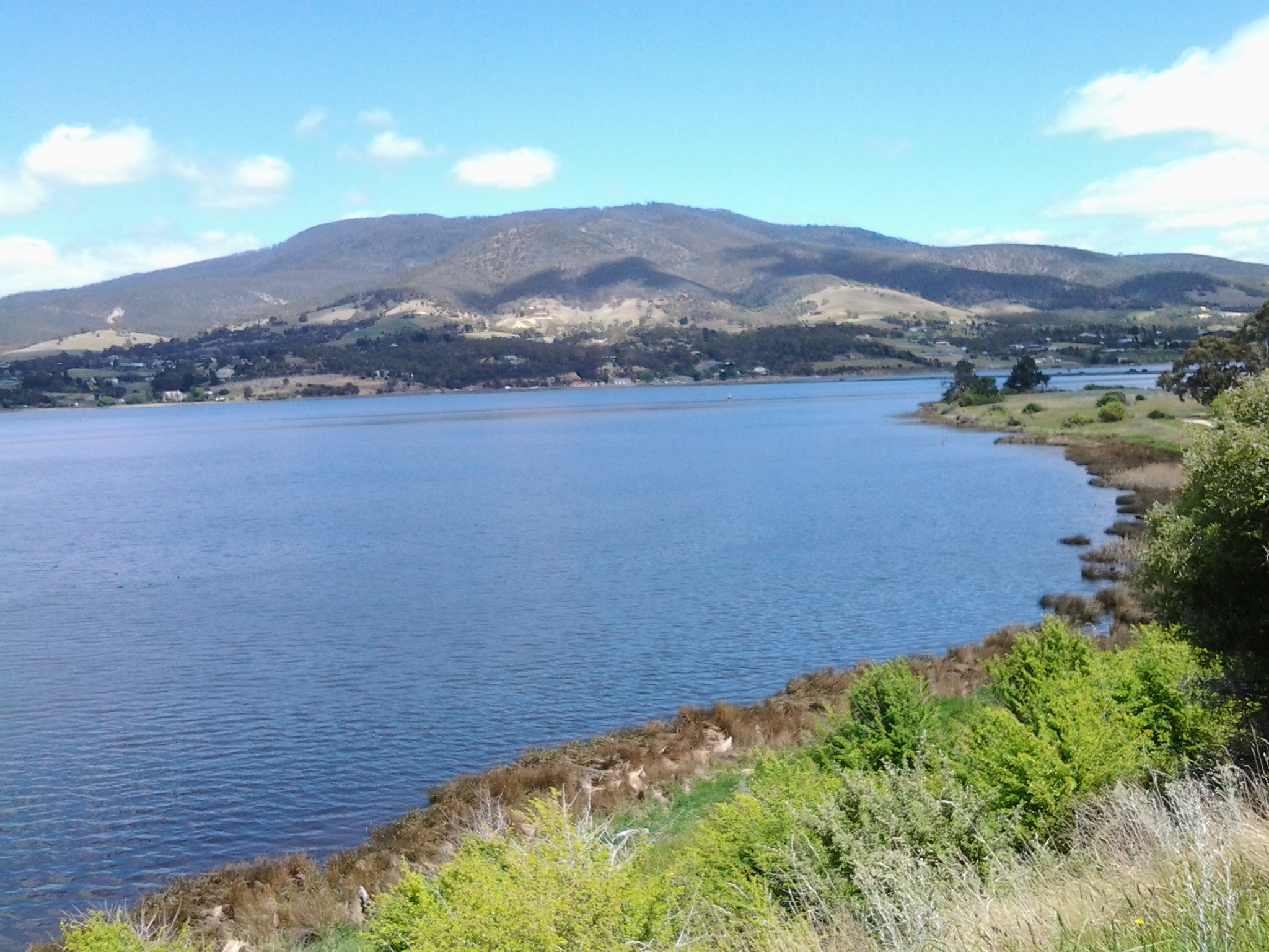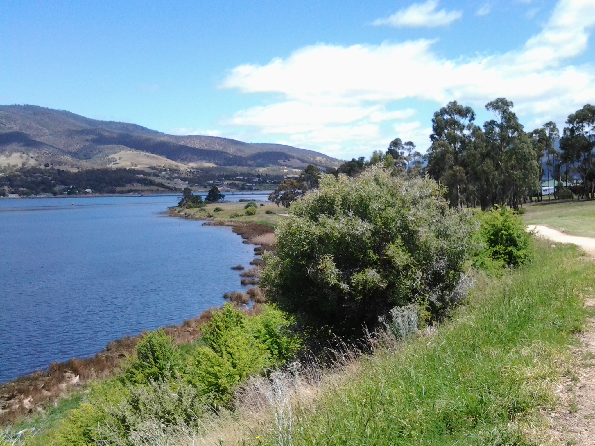 After Green Point and looking southwards, I could see Mount Direction in the distance (overlooking the Bowen Bridge – which I could not see). In the photo below, the swell of land on the right of the Derwent River is the foothills of Mount Wellington.