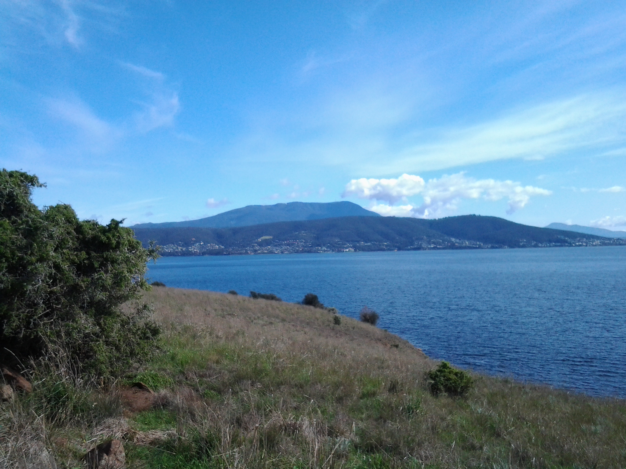 The photo below was taken from Gellibrand Point, Stage 2’s destination. It looks across the Derwent River towards Hobart city with Mount Wellington behind.
