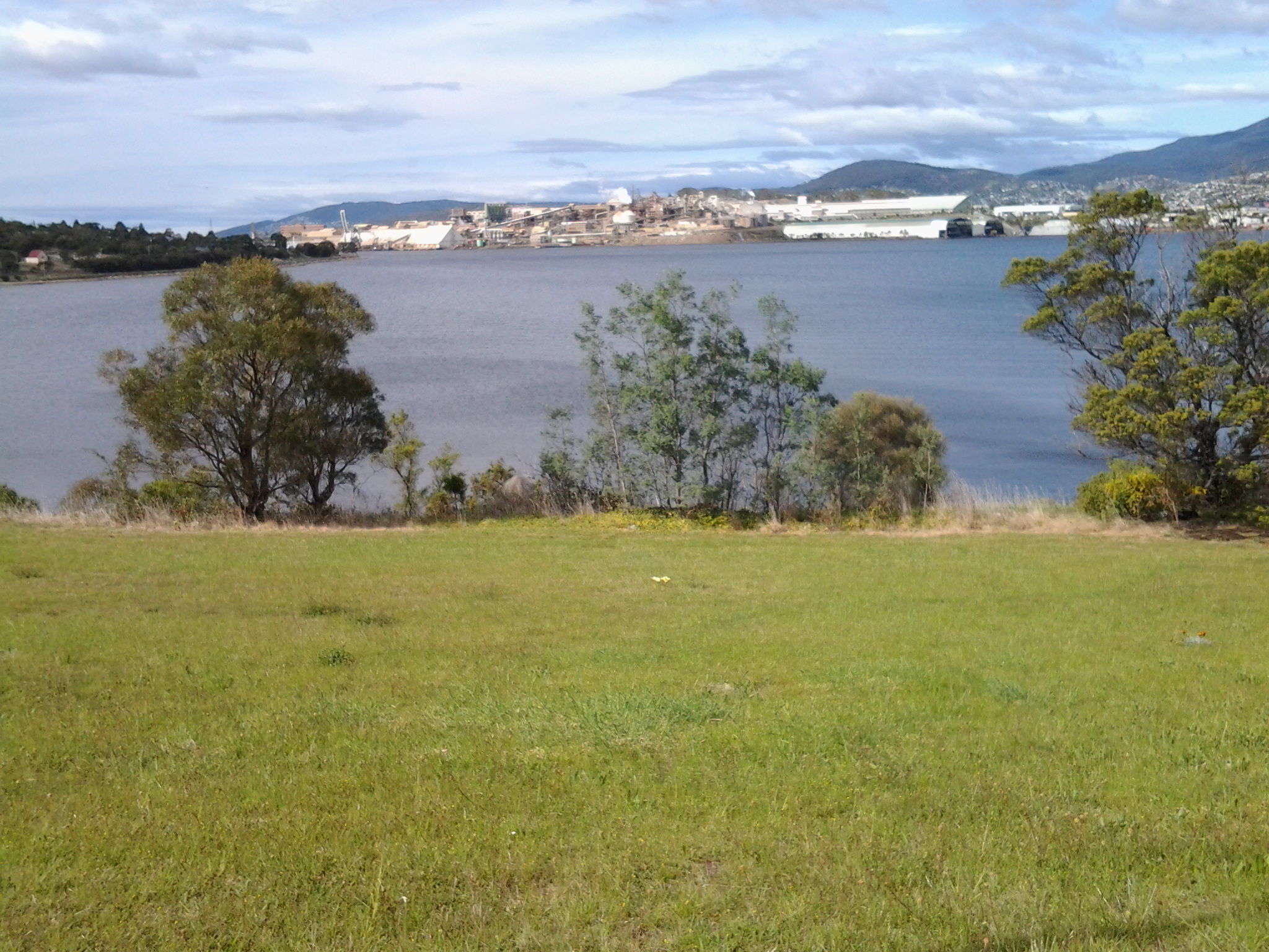My view across the Derwent took in the noisy Nystar works previously seen and heard on Stage 6 of the walk. Immediately next to Nystar and further north, I could see another major industrial site: Incat, a manufacturer of very large catamarans. In the photo below, a massive white structure has two dark ends. Inside each of these spaces, a new catamaran is being built – usually for an overseas market.