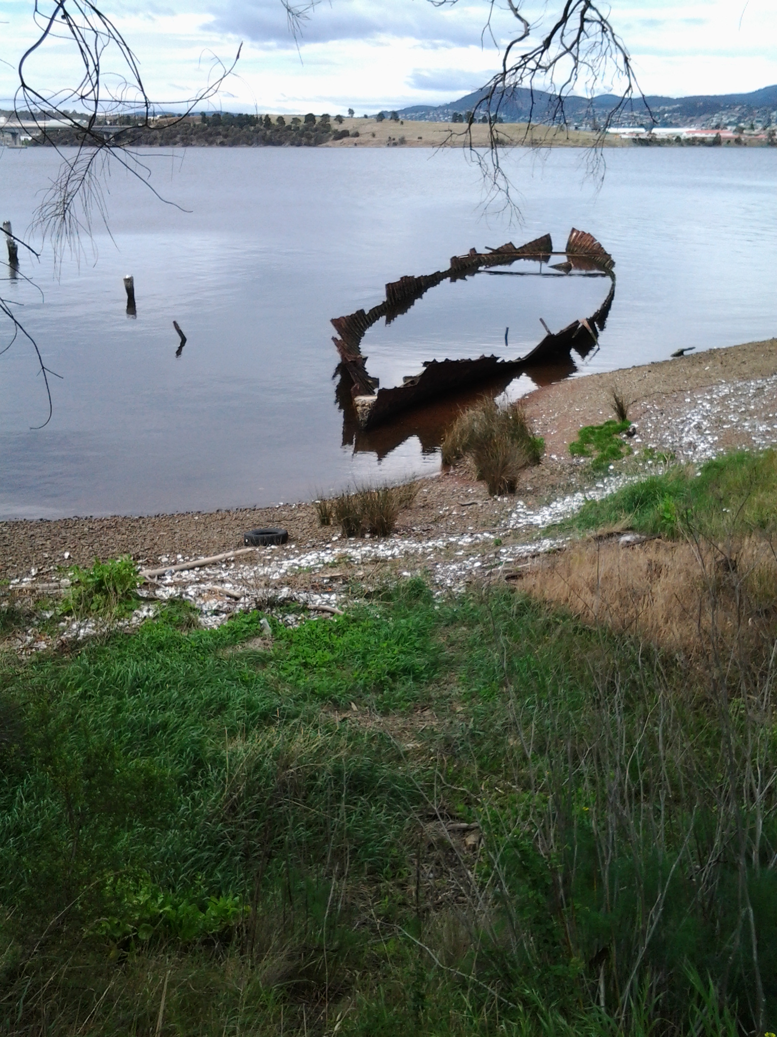 At 10am I arrived at the junction road leading left to the Cleburne Spit. The Spit looked very much like a man made raised wall approximately one or two car widths wide that extends out in a straight line into the Derwent River. Perhaps it was a series of rocks that once could be walked upon and then someone dropped filling rocks to create a breakwater to fish from or some other activity. I wonder what the real story is. My guess is that the Spit was named after 19th century settler Richard Cleburne. He was an interesting character who had a property in the area and was suspected of smuggling. Did the Spit figure in such illegal activities I wonder? More information about Richard can be read at http://adb.anu.edu.au/biography/cleburne-richard-1903.