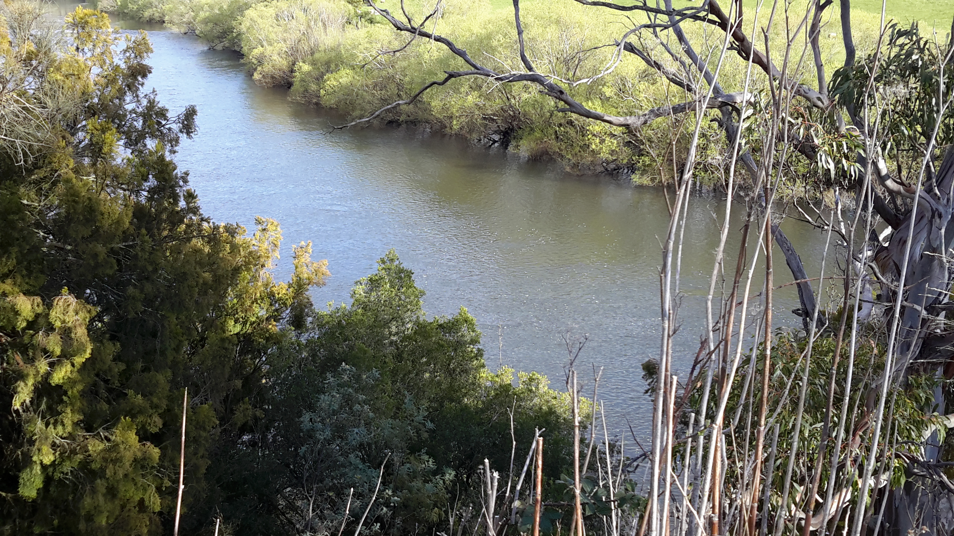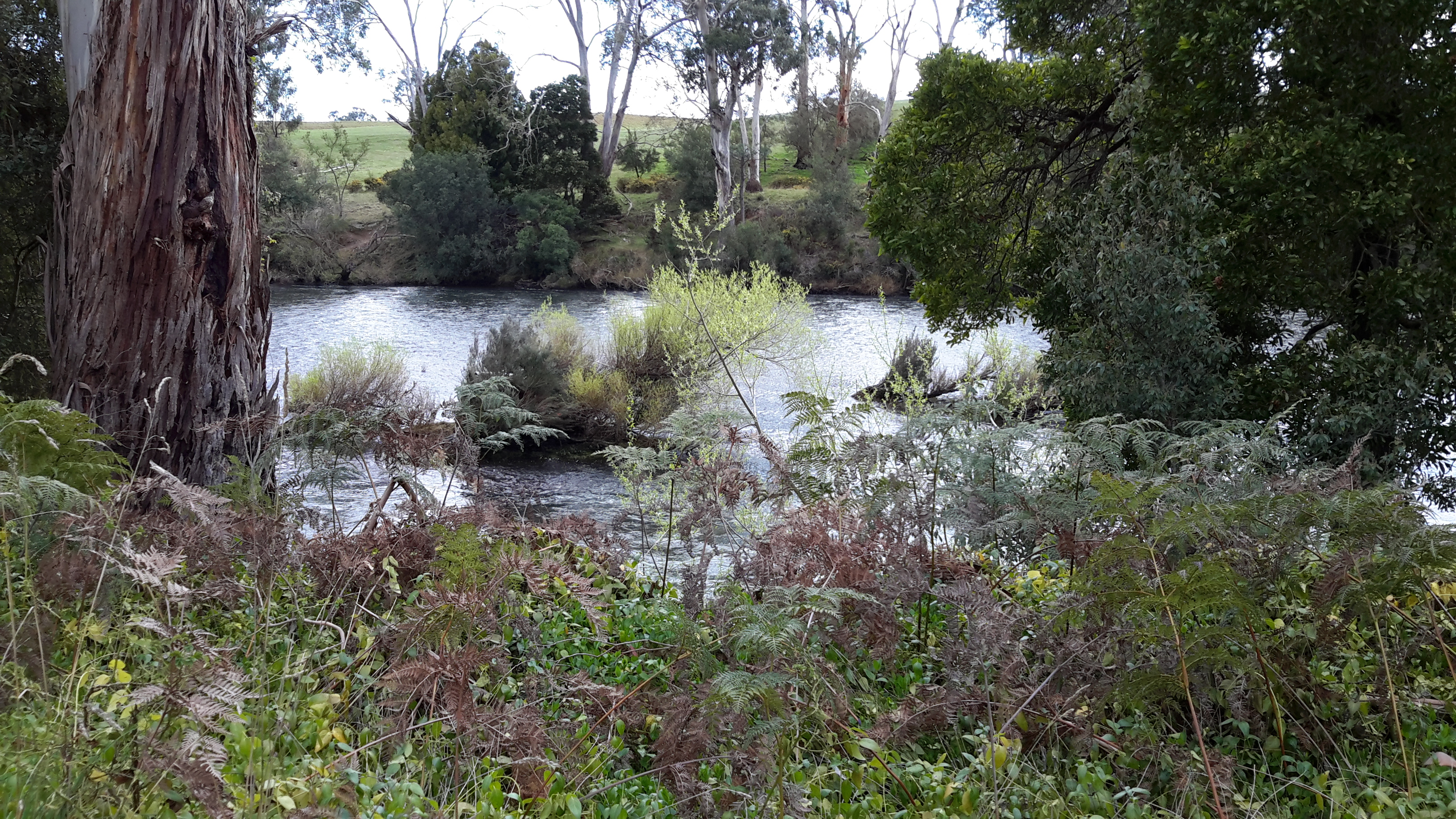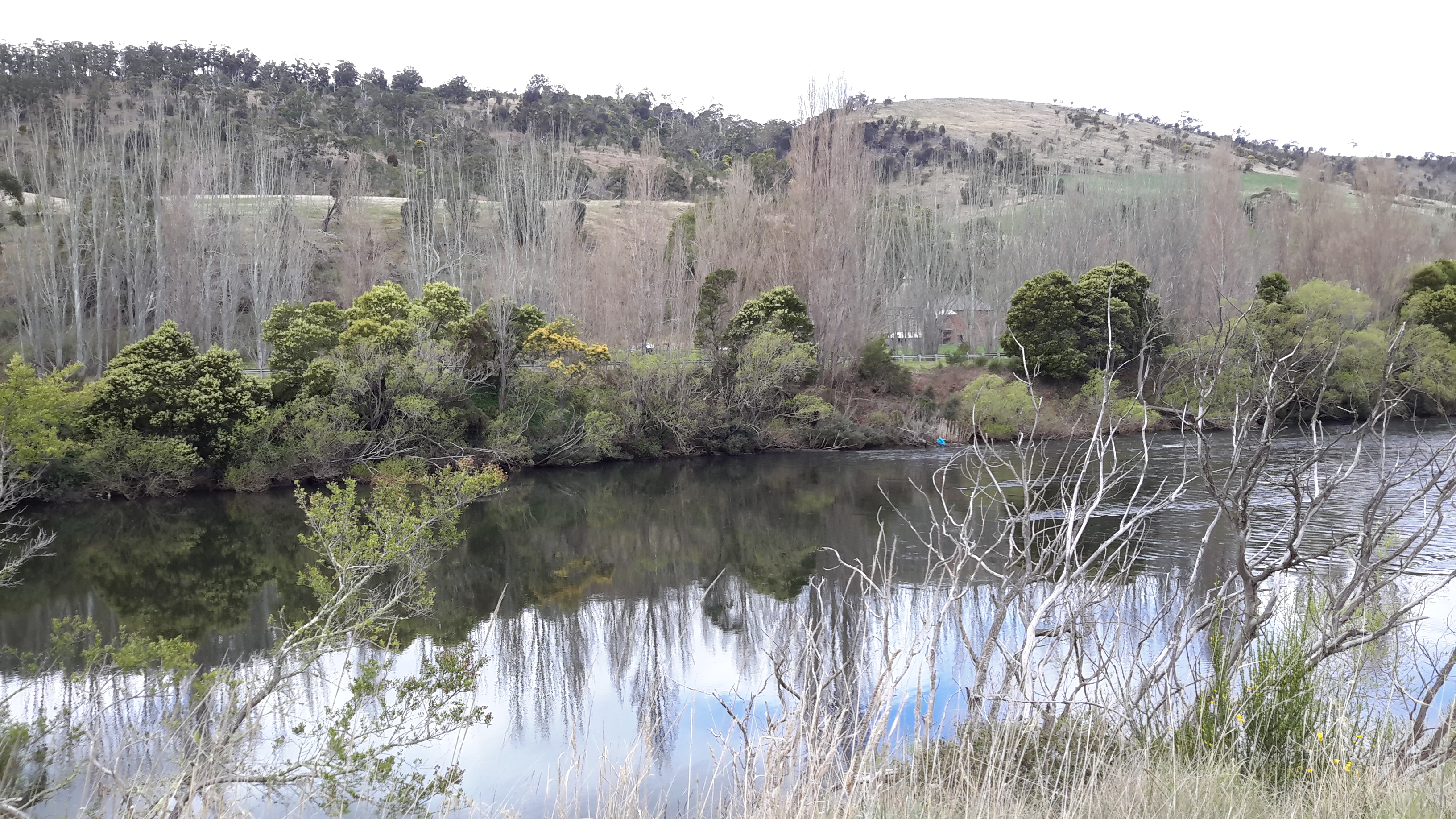 While I walked along approximately 4km of the river’s edge towards where the Clyde River entering the Lake, my friend Alex waited. As she sat in the car reading newspapers and drinking tea from her thermos, the wonderful view down to the ‘river’ as shown below was hers to savour. In fact this waterway is one part of the very long Meadowbank Lake through which the Derwent River flows. One of Alex’s photos is shown below.