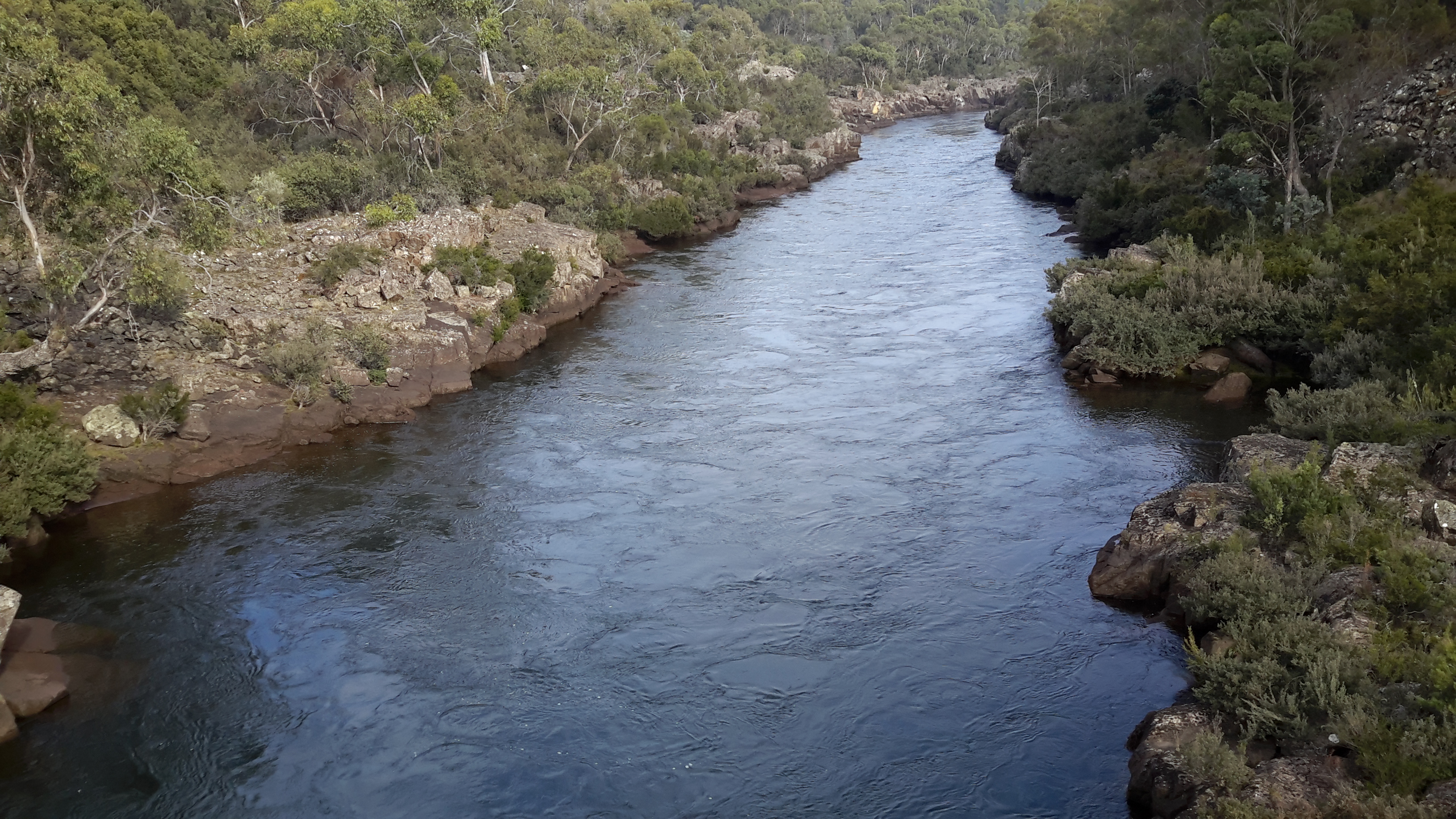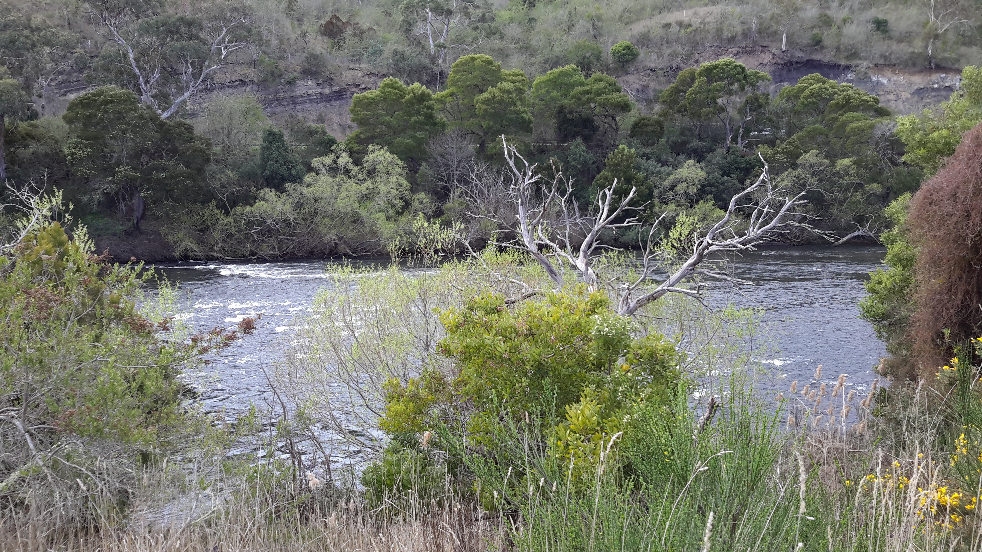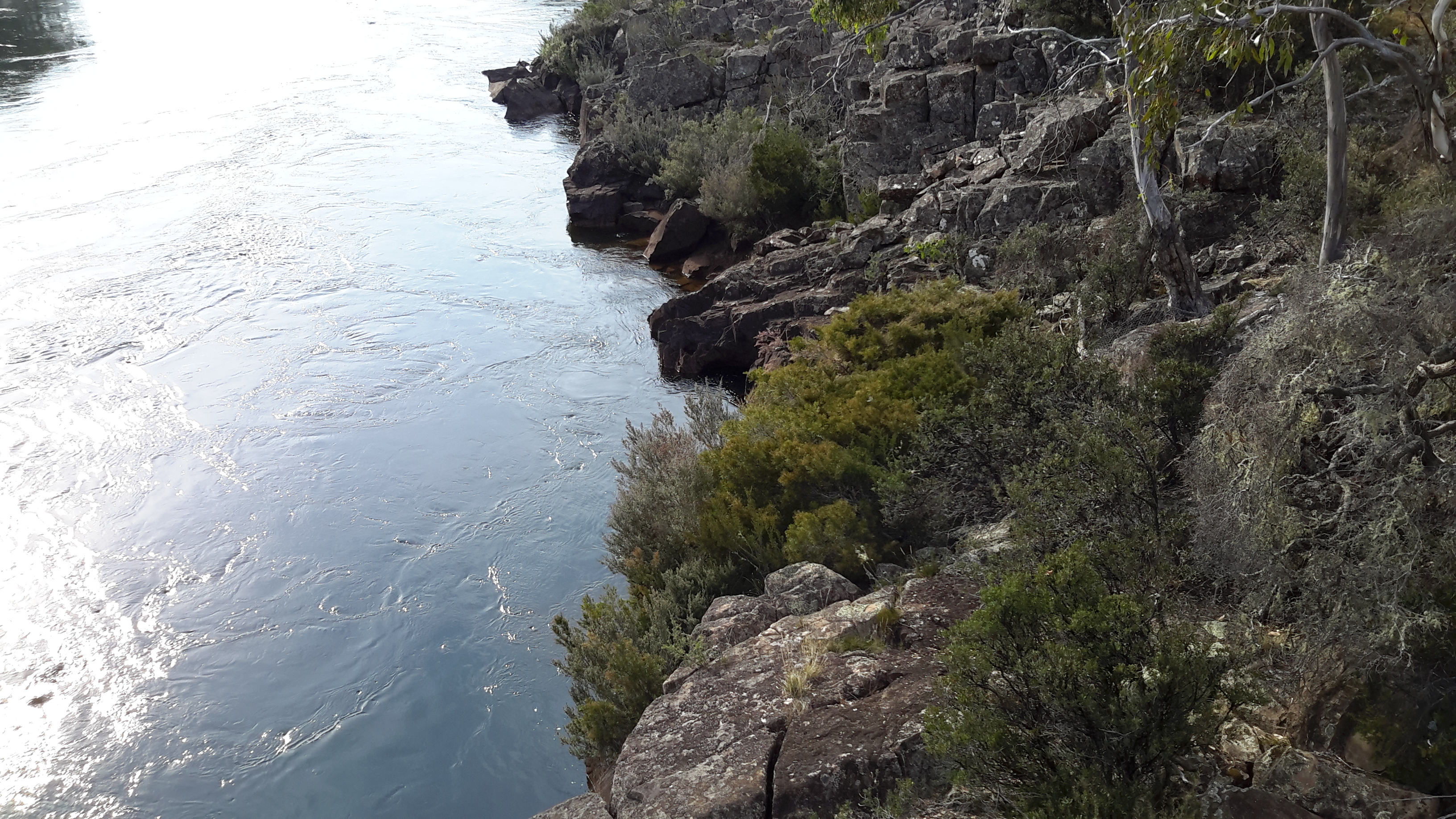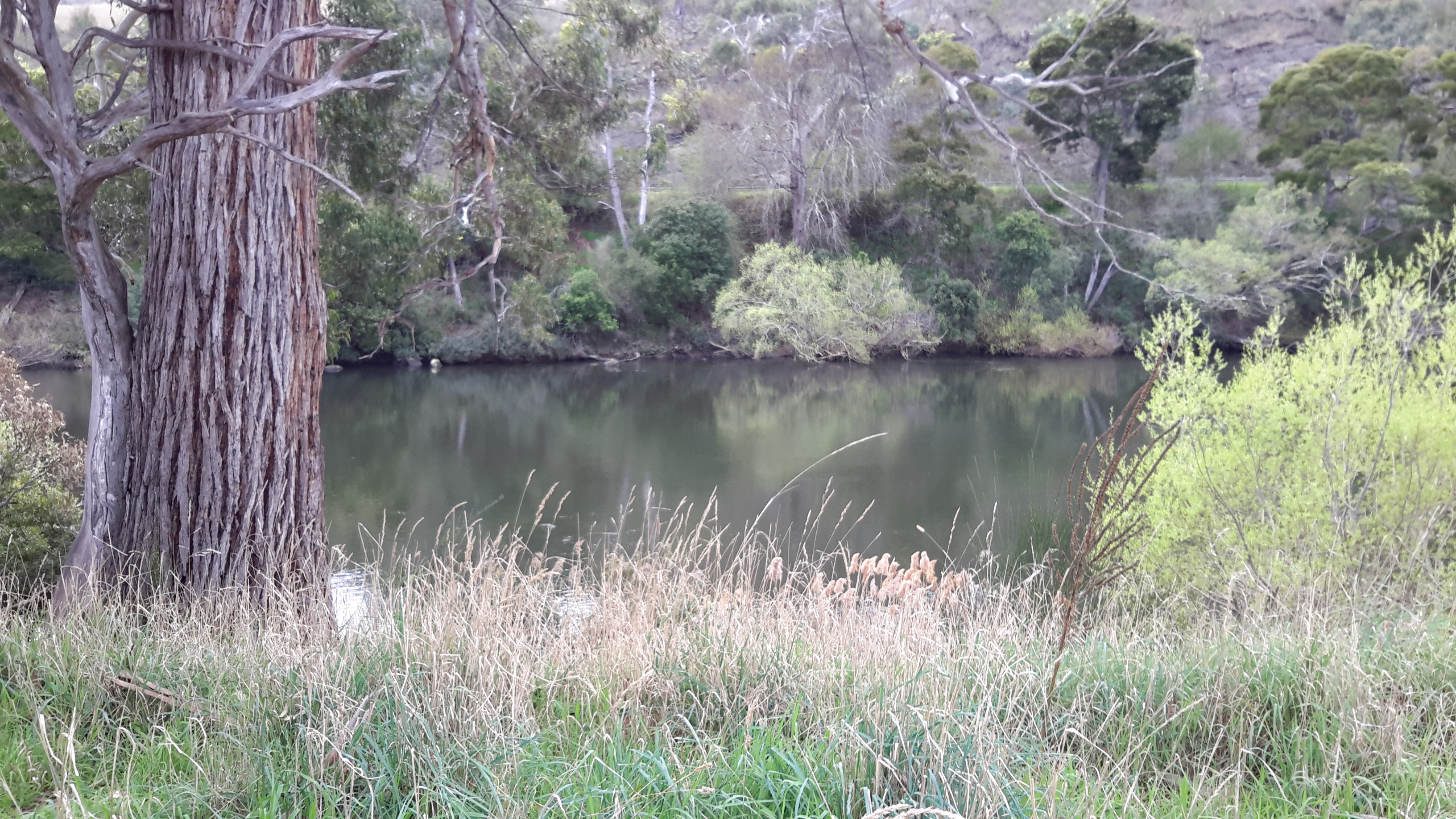 While I walked along approximately 4km of the river’s edge towards where the Clyde River entering the Lake, my friend Alex waited. As she sat in the car reading newspapers and drinking tea from her thermos, the wonderful view down to the ‘river’ as shown below was hers to savour. In fact this waterway is one part of the very long Meadowbank Lake through which the Derwent River flows. One of Alex’s photos is shown below.