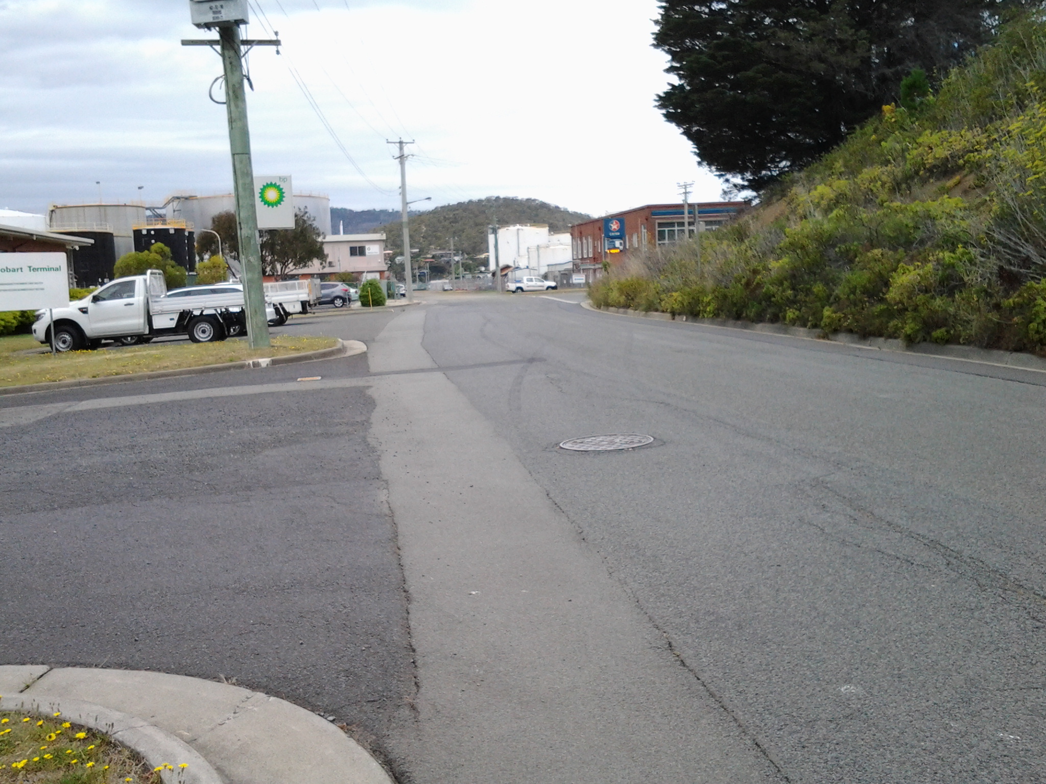 However there were no clearly discernible paths across large expanses of mown grass. I did the best I could and soon found myself at the Sewage Treatment Plant on the edge of the Derwent. For a short while I followed a track down to the rocky shore, but at a certain point it was clear that if I reached the water level (and the descent didn’t look anything but potentially dangerous), there would be no way up on the other side of the Treatment Plant. I retraced my steps. Then I tried to walk along the fence line in front of the Plant, but I soon found this way was impassable. Wily blackberry canes thwarted further progress. The steep drop to the shore was frightening. And more Kookaburras were laughing. Ha. Ha. Ha. H. H. H. H. Ha. Ha. So, again I retraced my steps and decided to walk inland along and around the Sewage Treatment Plant’s fence line. There was a semblance of a track on my new route, but obviously I had missed the main ‘thoroughfare’.