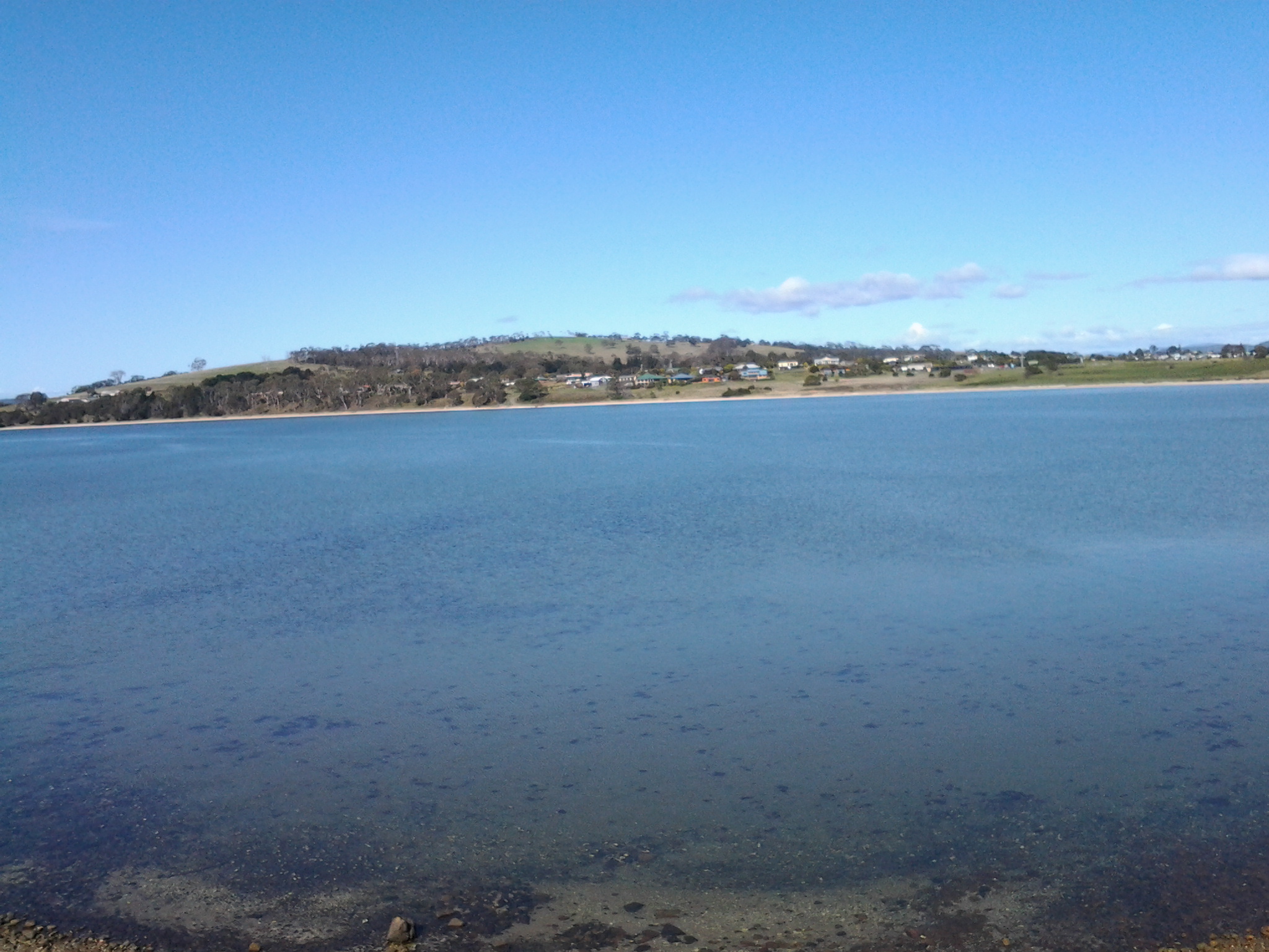 Different schools of 5 inch long fishlings darted from the clear shallows into slightly deeper water. The bank of sand beneath the Bay was very shallow and I suspect a swimmer might need to wade out quite a distance before being able to lie down and cover themselves comfortably with water. Out a little way in the bay, and like small mirrors, flashes of silver ovals lifted from the water’s surface when slightly larger fish came up for air. Or were they leaping with joy. Perhaps the fishlings that I disturbed when my feet vibrated the ground sending them scurrying for deeper and hopefully safer water, were a delicious meal for the larger fish.