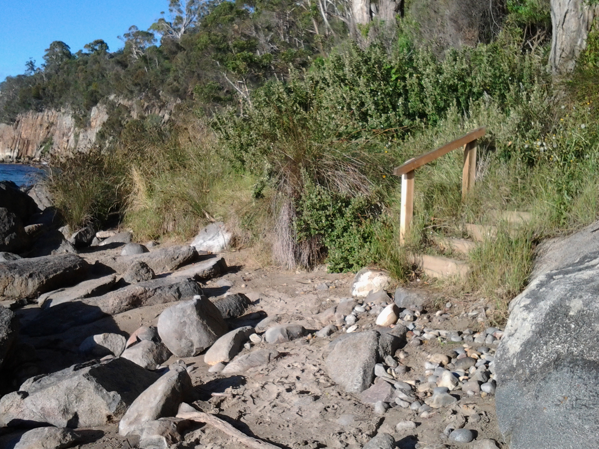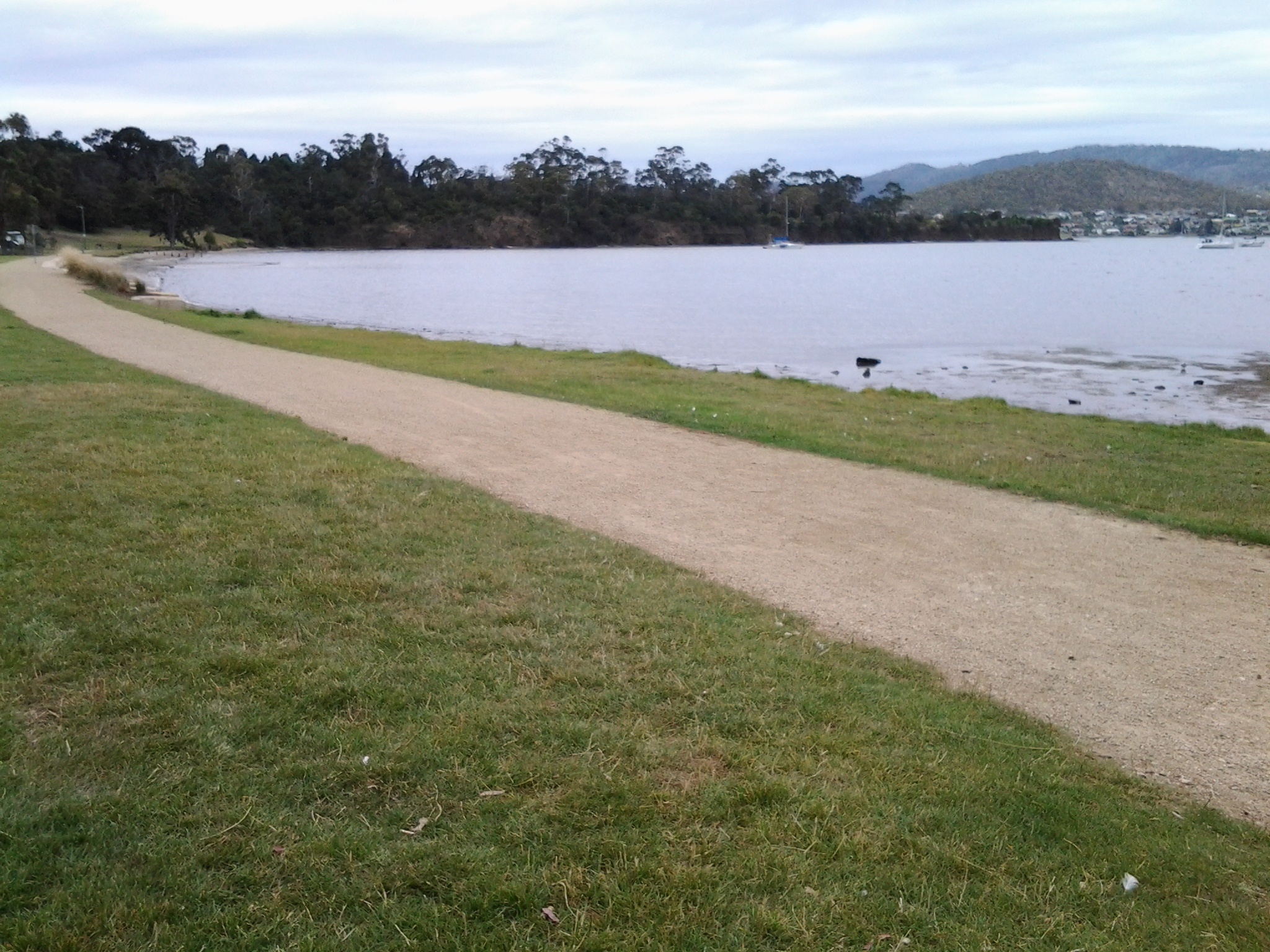 The time was 8.22am as I offloaded my jacket, smeared sunscreen across exposed parts of my body and continued walking along the track until it extended up into a suburban street. At 8.25am I turned left into Wandella Ave, wandered along past houses for a while, could not see any further tracks back to the Alum Cliffs, talked to a local who did not think there was one and recommended that I should walk up to the Channel Highway and continue southwards on that road.