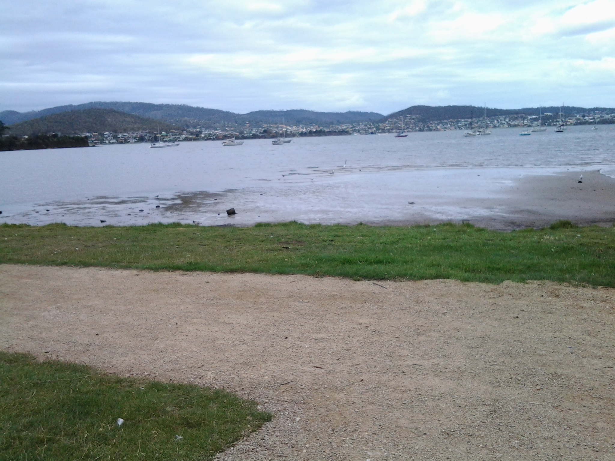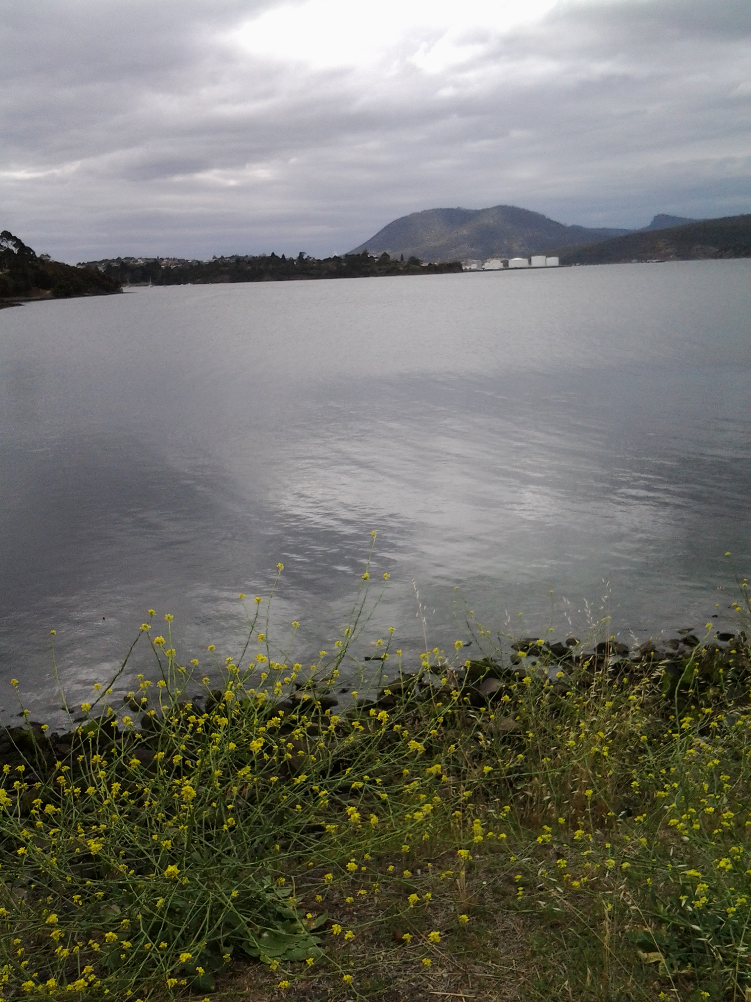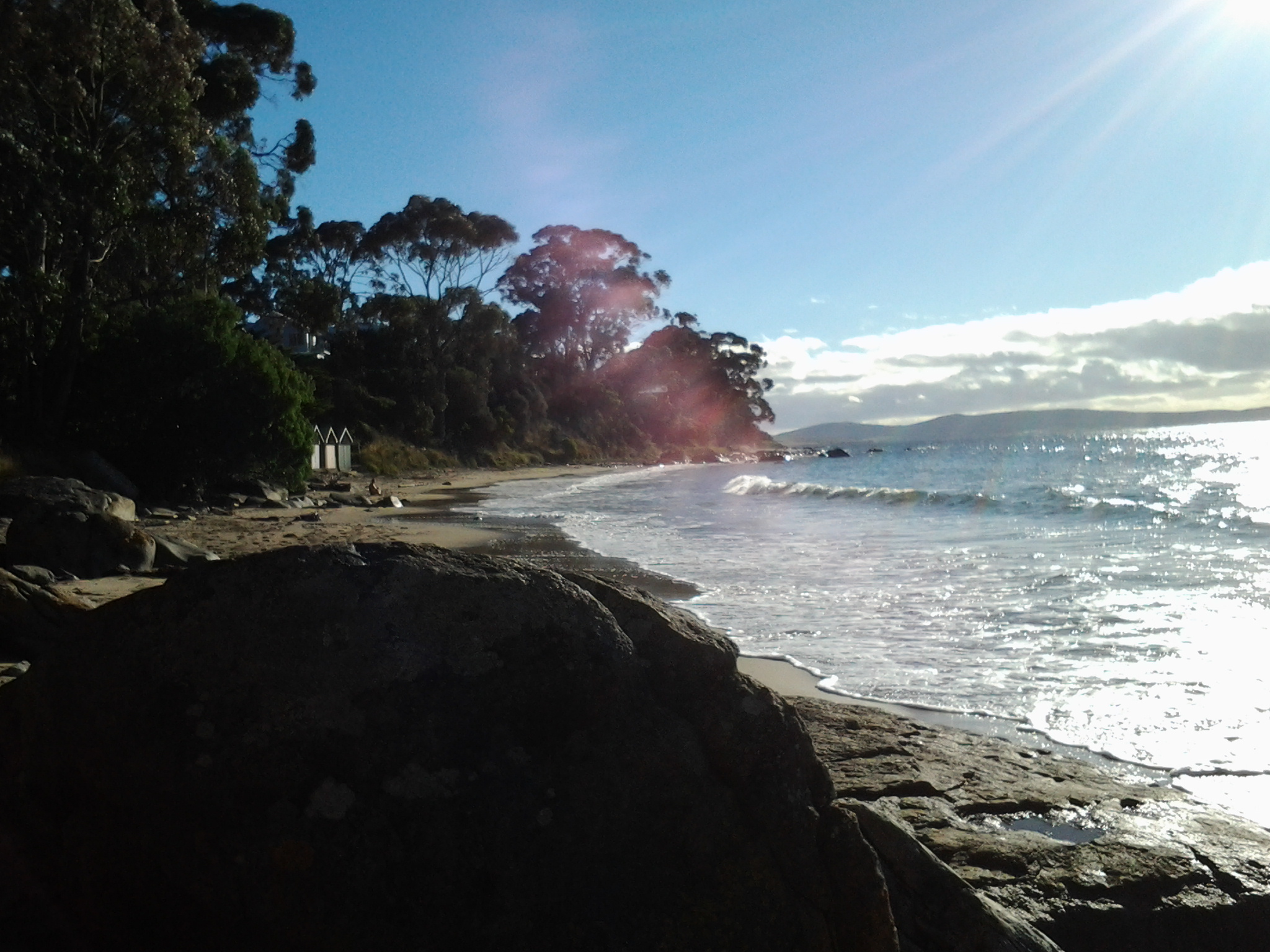 I left home in Bellerive on the eastern shore of the Derwent River before 7am while the morning was cool and the light was soft grey. By the time my bus into Hobart city was travelling over the Tasman Bridge, the sun had hit the top of Mount Wellington, the sky was blue, and the day promised to be sensational. The dramatic circus tent on the Queens Domain was being dismantled. People on the bus seemed to be dozing. Yet outside the bus, I wondered at the stunning crispness of shadows and sunlight causing windows to sparkle. The look of the day made me feel like I was sparkling. But my eyes were wide open. Waiting at the bus stop at Franklin Square for a bus headed towards Kingston but passing through Taroona, all I could think was ‘glorious, glorious, glorious’.