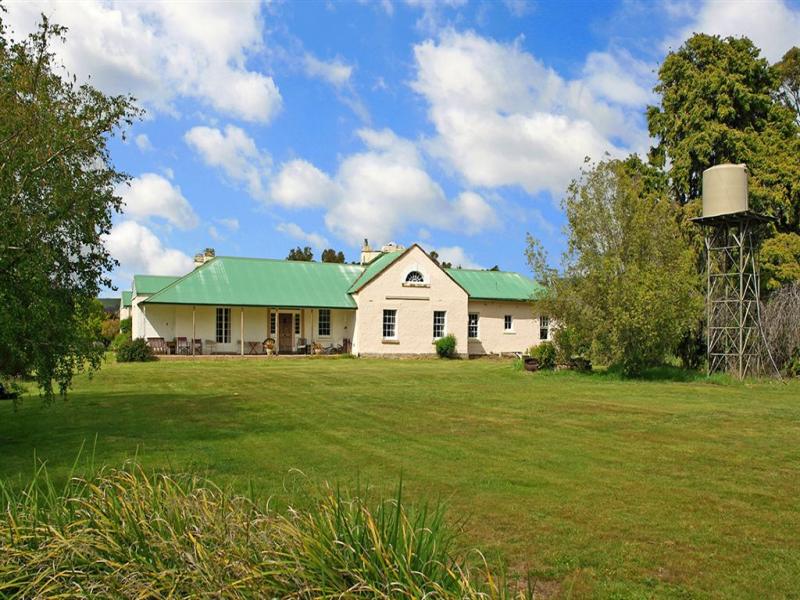 This 1820’s house was photographed and written up on a real estate site ‘The original brick section of Cluny was established with a larger sandstone section added in 1919 from sandstone sourced from an old farm building. Original timber floors, doors, window frames, open fire places and picture rails are featured throughout the home. A wide hallway leads to the four double bedrooms. The entire front boundary of this property is on the Derwent River with the advantage of a water licence and irrigation. The fertile river flats are suitable for any number of agricultural pursuits. The entire front boundary of this property is on the Derwent River with the advantage of a water licence and irrigation. The fertile river flats are suitable for any number of agricultural pursuits. There are numerous outbuildings including a five bay garage and machinery shed and an ancient stone cottage.’