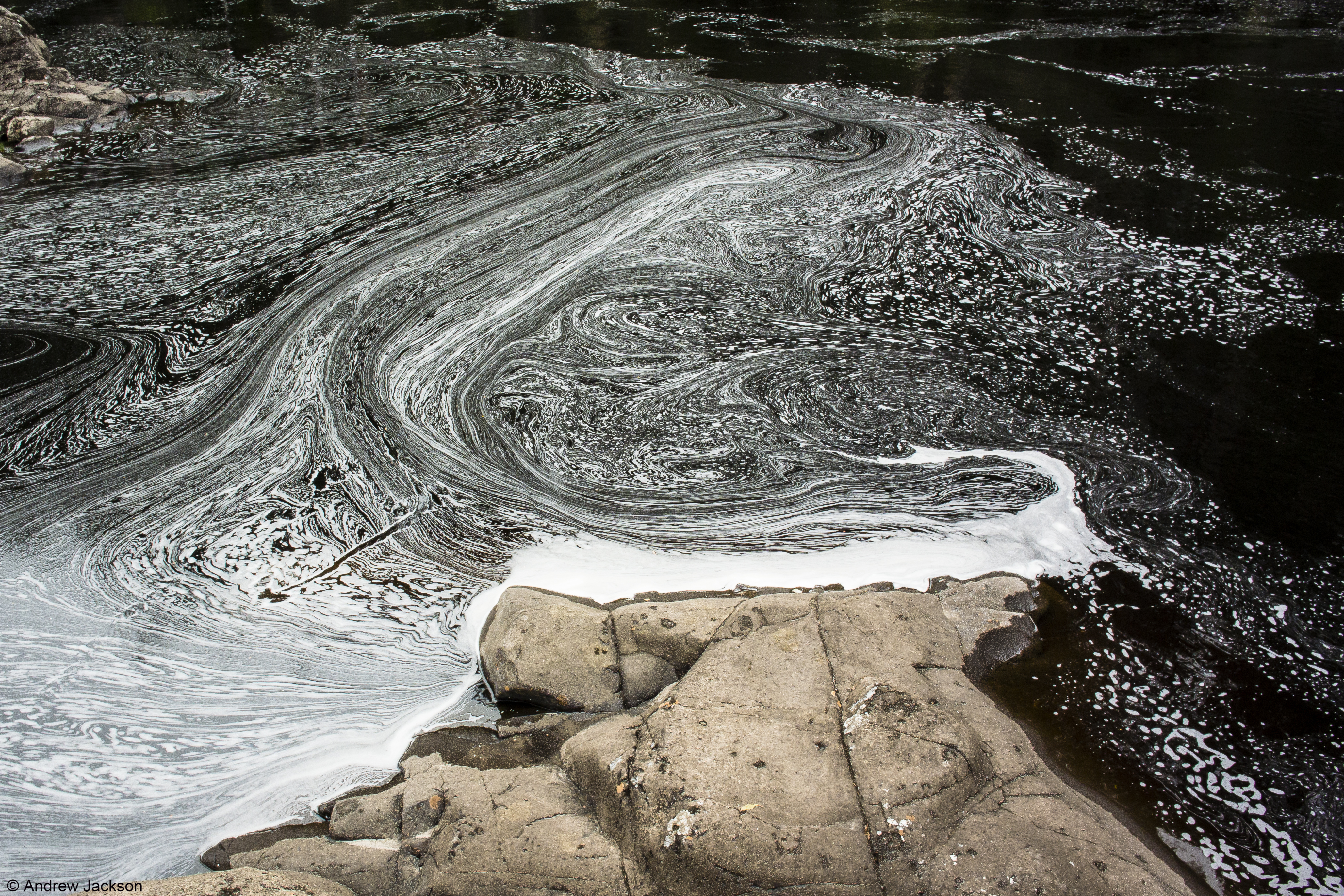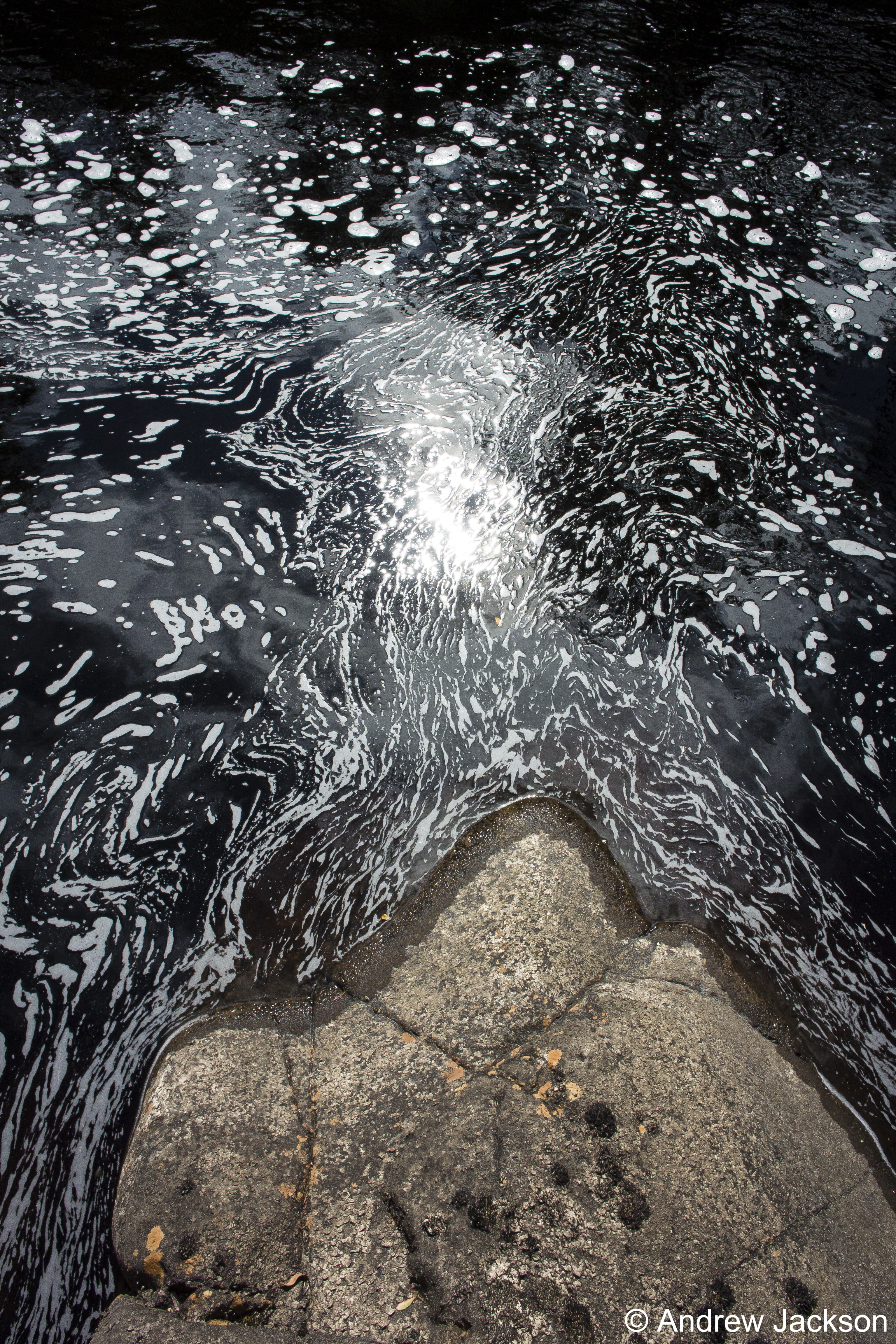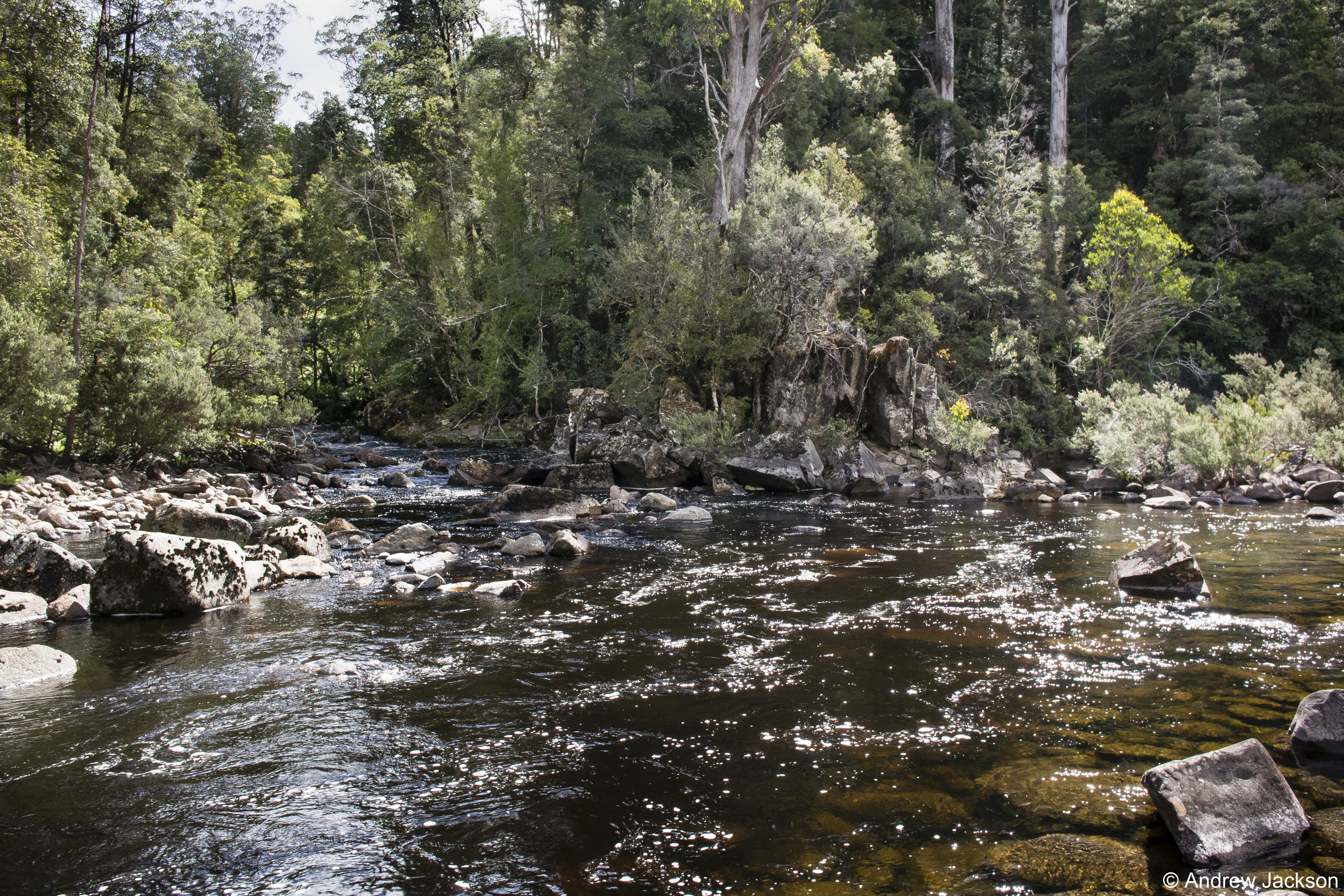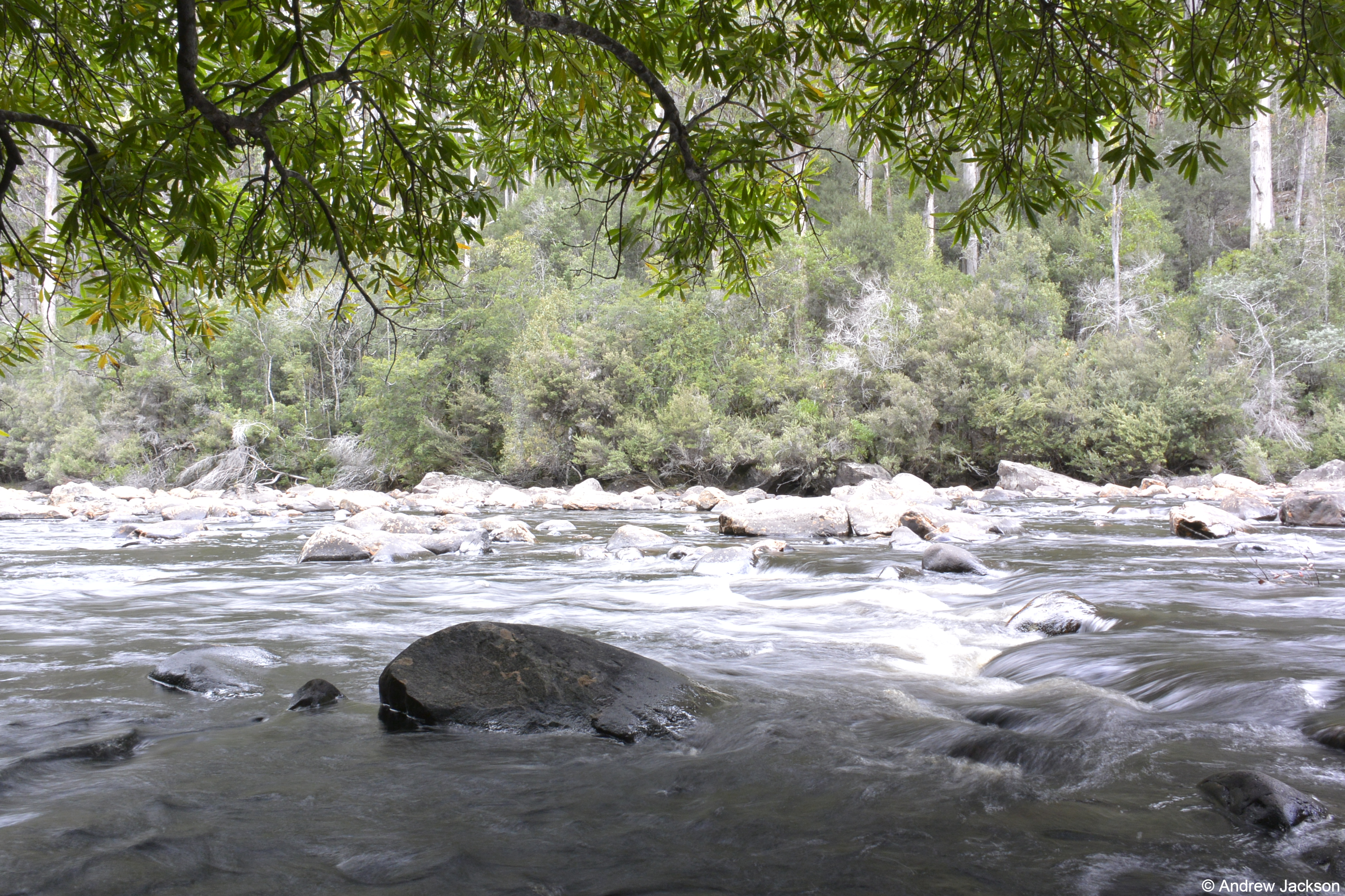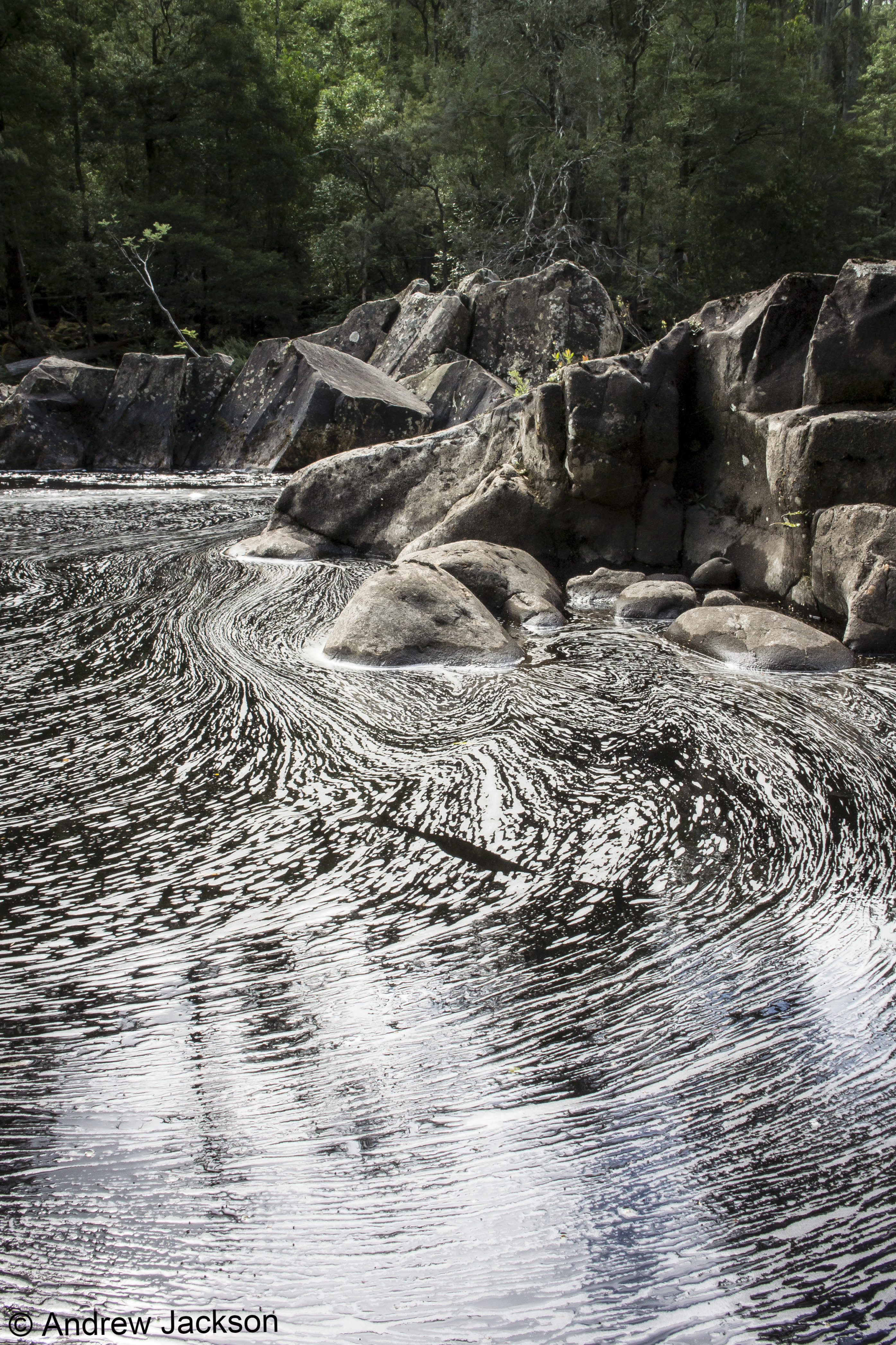 The title of the book references a drawing by an early Tasmanian surveyor George Frankland which he named ‘Fall of the Derwent’. Colonial artist Thomas Bock engraved the image and James Ross printed the picture in The Hobart Town Almanac in 1830. The picture was drawn at a site near unpassable rapids on the Derwent River upriver from New Norfolk. When Justy and Margaret walked past what they believed was that place, they took a suite of black and white photographs; half a dozen or so of these images are bound into their book. Without returning to that area I seem to remember the spot. After reviewing my photographs in that area, clearly I was looking for serenity and simplicity. I was looking at colours and contrasts. It seems I was focusing on one way of seeing that world of the Derwent River, and Justy and Margaret’s view is an alternative.