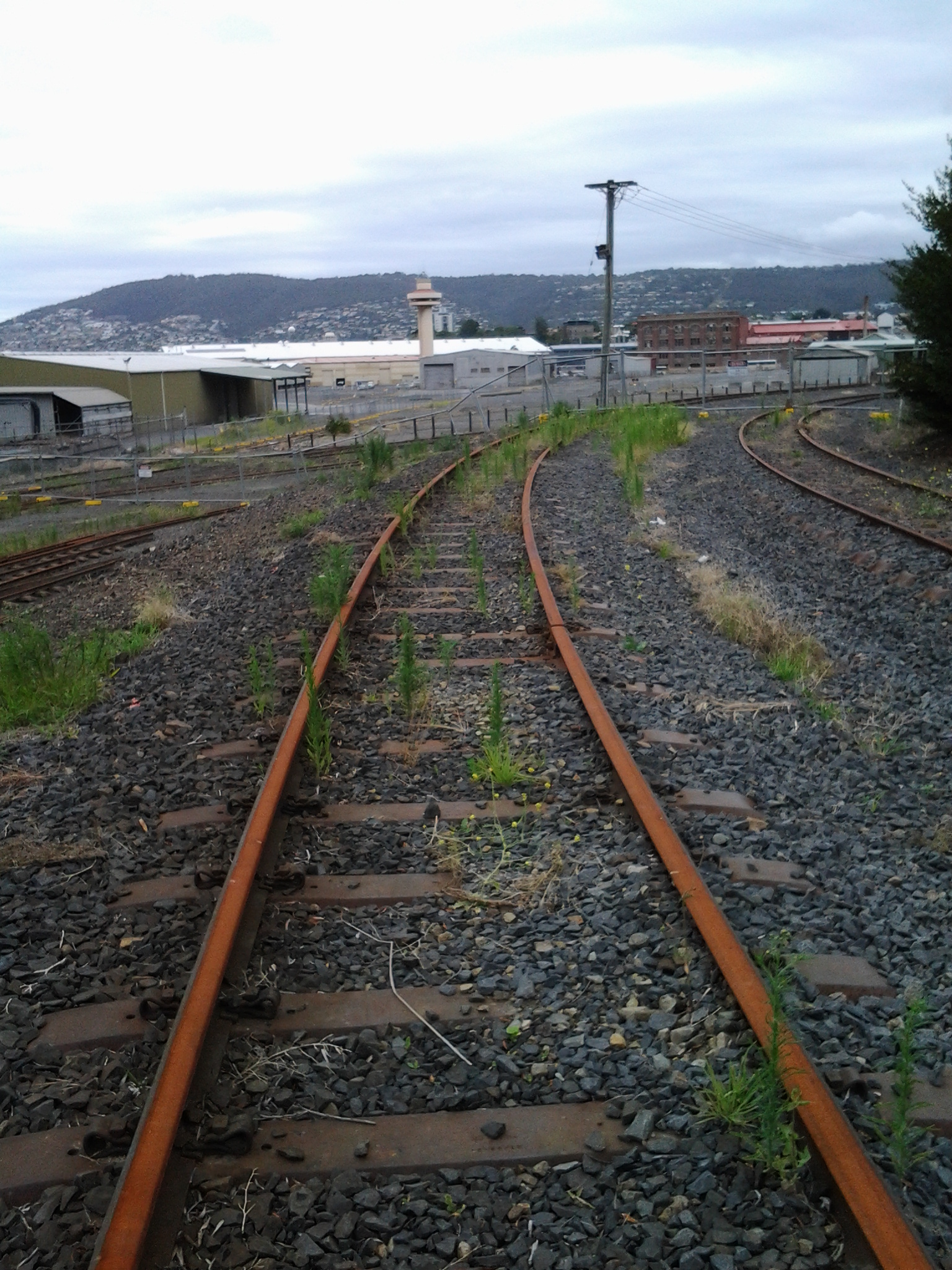 Reaching the ‘end of the line’ on arrival in Hobart city.